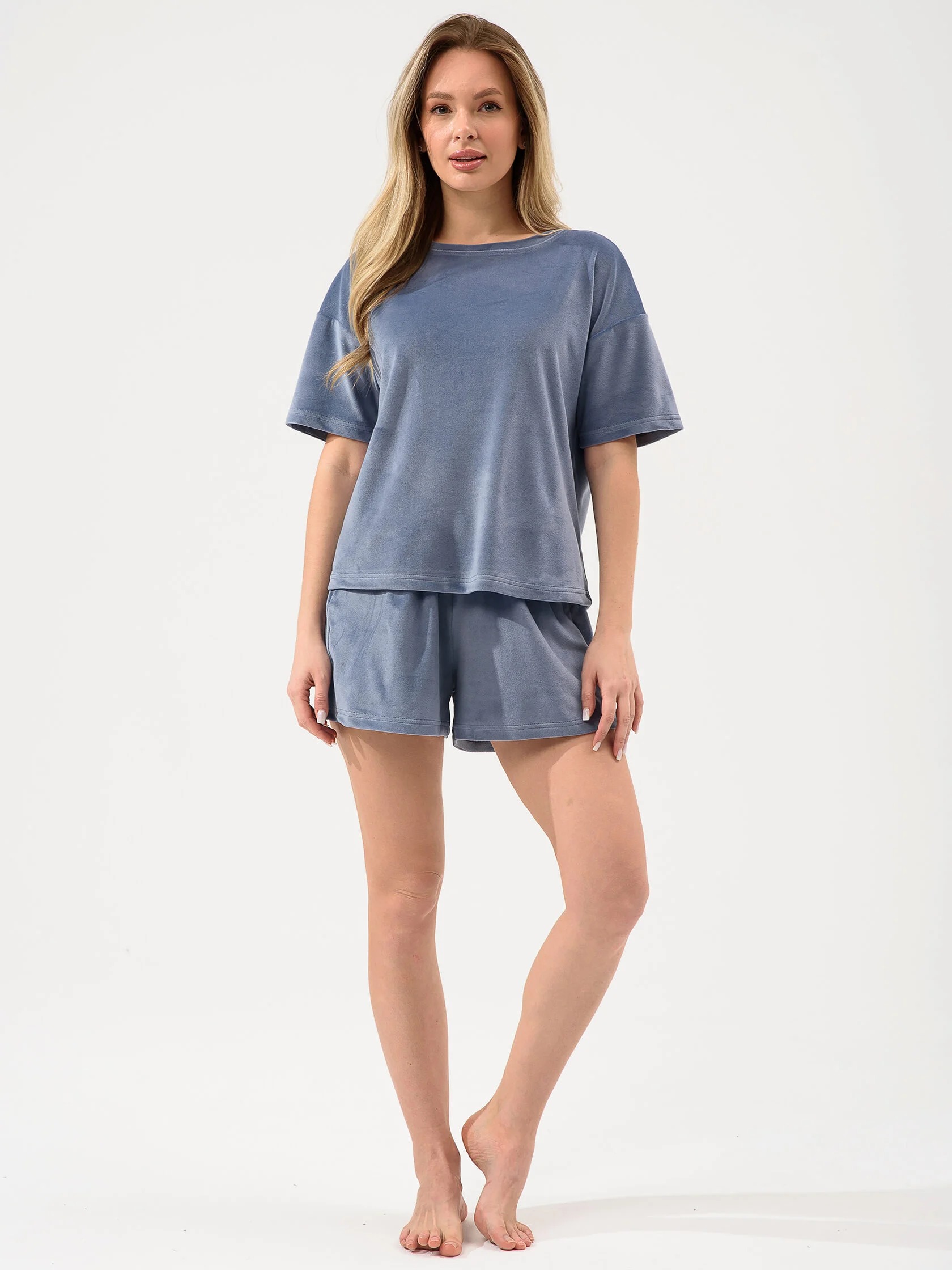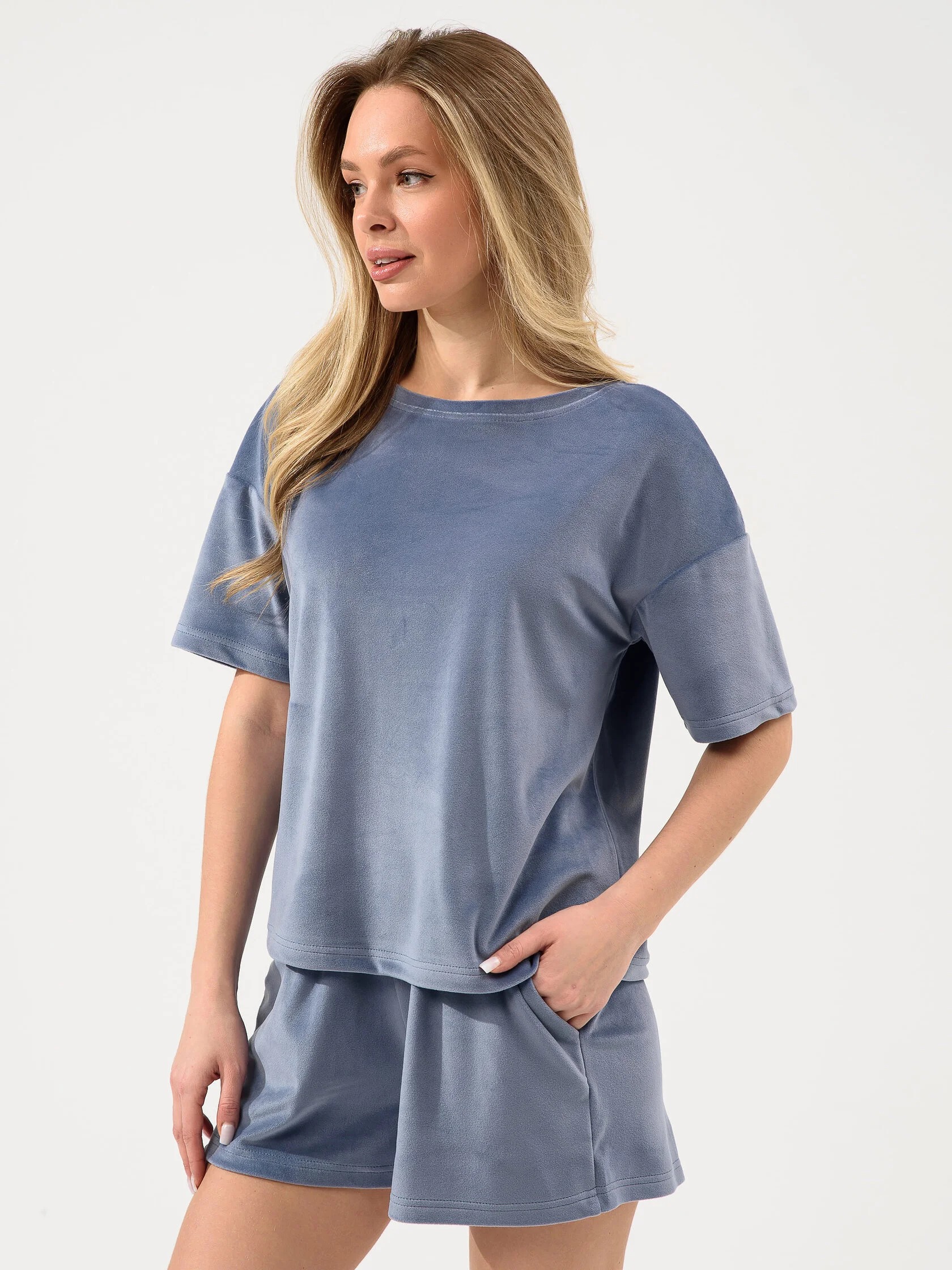 Женский костюм из велюра с шортами — это сочетание комфорта и стиля, подходящее для дома, отдыха или повседневных образов. Такие костюмы обычно состоят из футболки или толстовки и шорт на резинке, выполнены из мягкого материала, который приятен на ощупь.