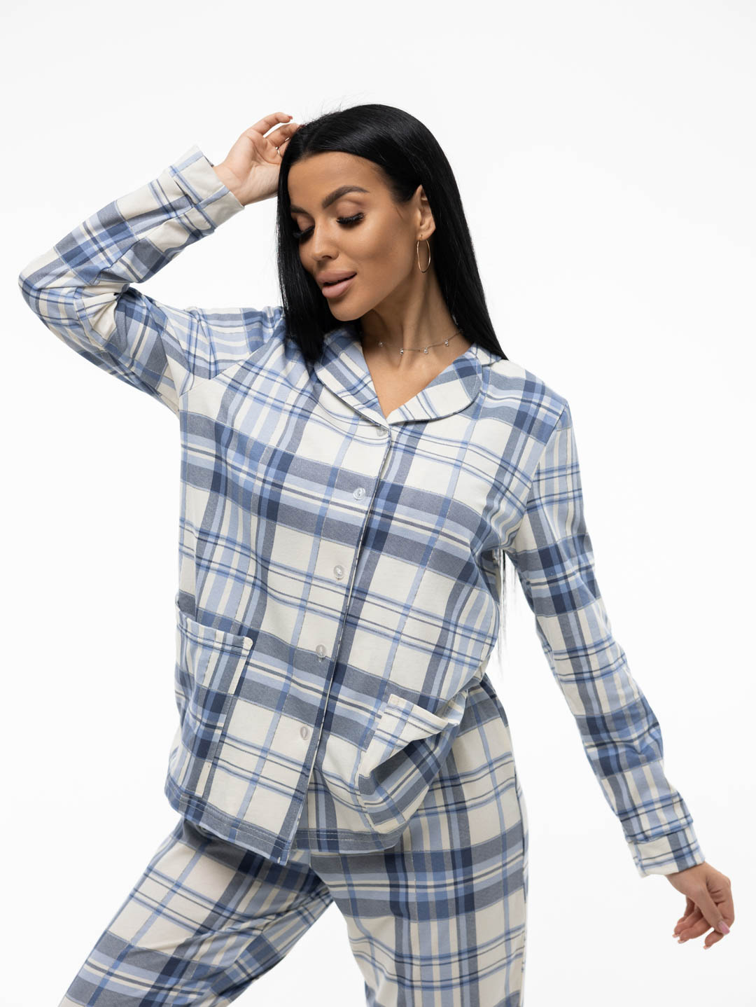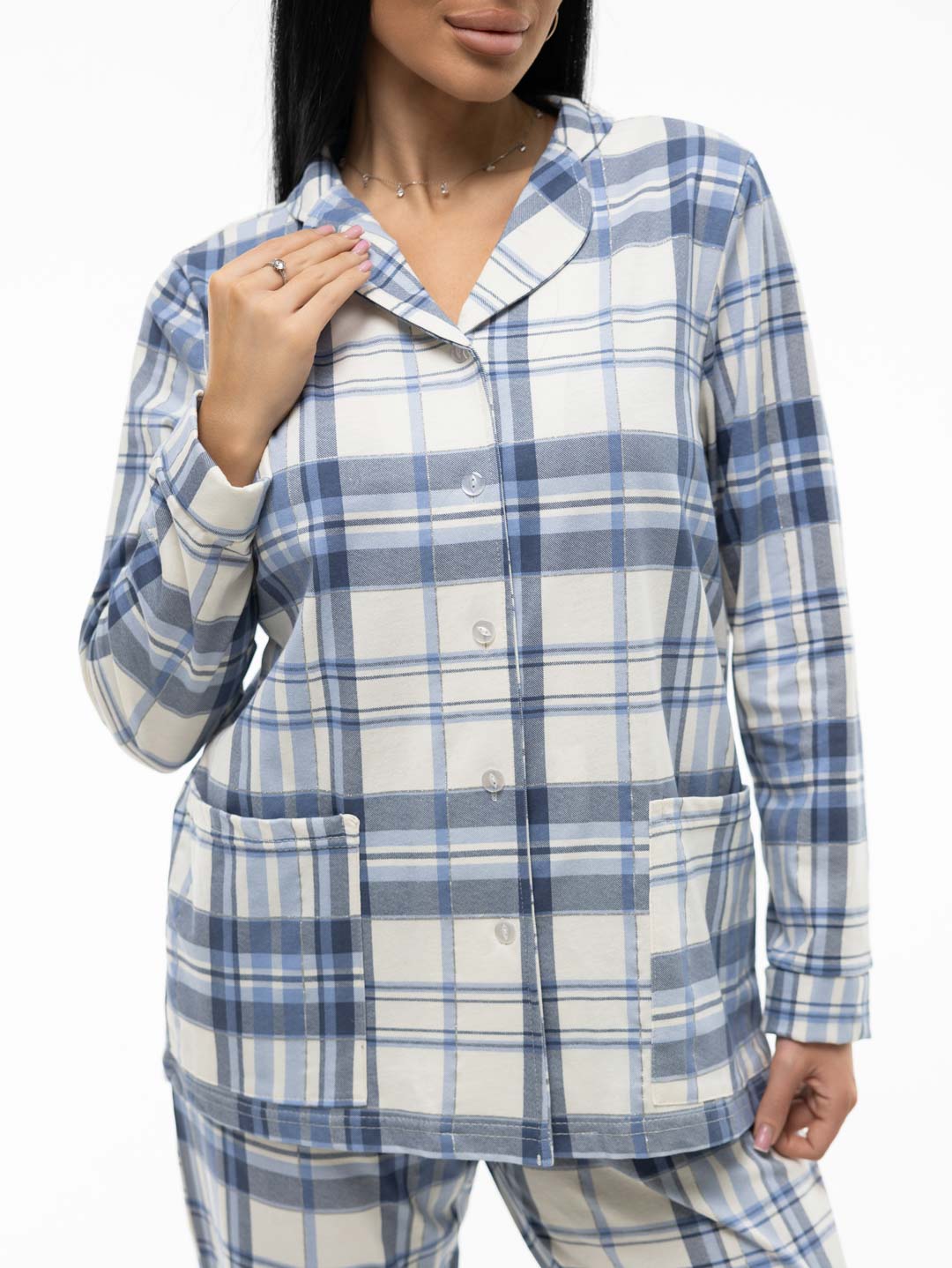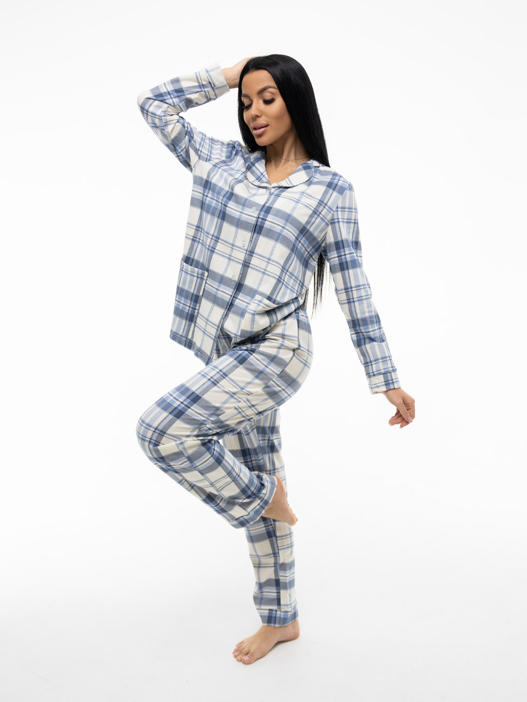 Пижама в клеточку с длинным рукавом станет незаменимой вещью в гардеробе любой девушки. Верх пижамы с отложным воротником, базовым втачным рукавом и двумя накладными карманами на полочке. Брюки умеренного объема на резинке. Наш костюм идеально подойдет для пижамной вечеринки с подружками, фотосессии или просто на каждый день.