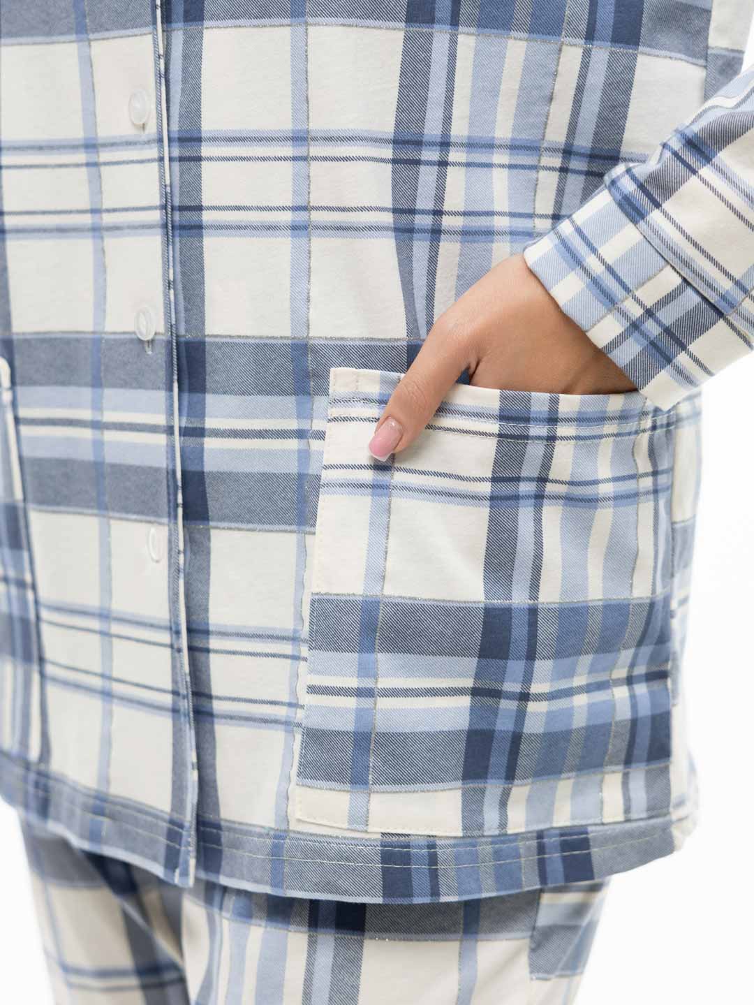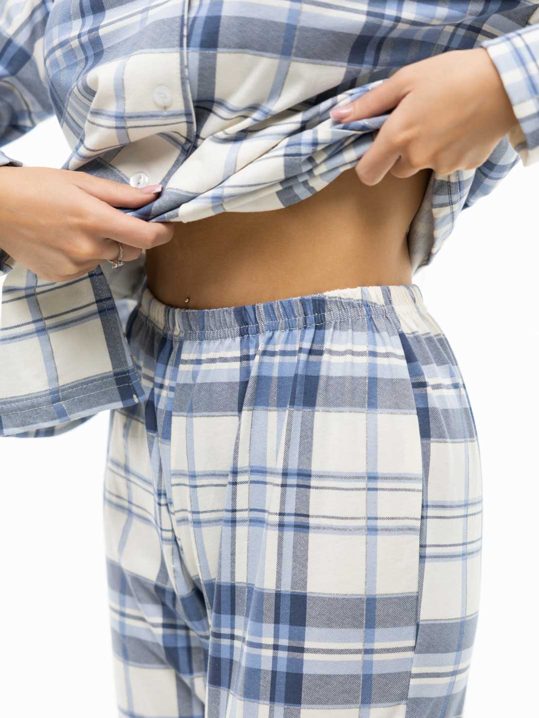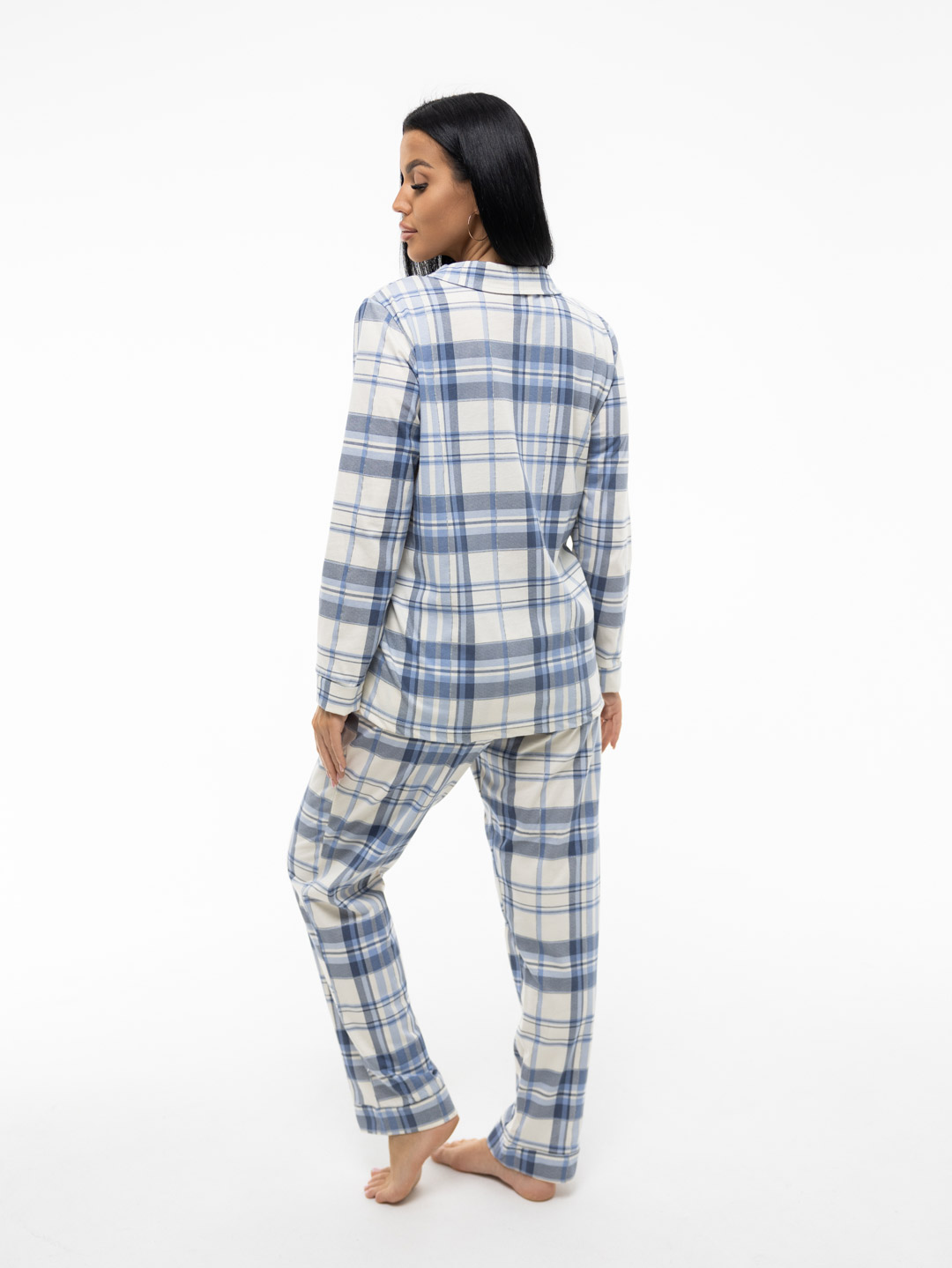 Пижама в клеточку с длинным рукавом станет незаменимой вещью в гардеробе любой девушки. Верх пижамы с отложным воротником, базовым втачным рукавом и двумя накладными карманами на полочке. Брюки умеренного объема на резинке. Наш костюм идеально подойдет для пижамной вечеринки с подружками, фотосессии или просто на каждый день.