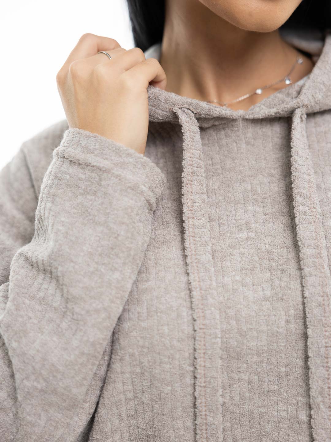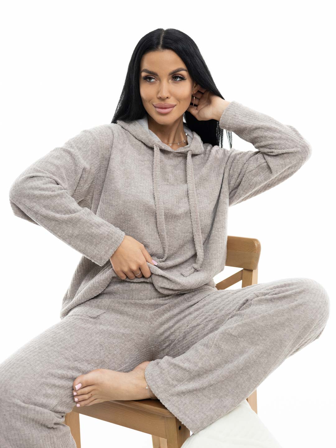 Костюм домашний махровый с брюками представляет собой идеальный выбор для тех, кто ценит комфорт и тепло. Он выполнен из мягкого и теплого материала, который обеспечивает максимальное удобство и свободу движений. Худи с капюшоном, длинным рукавом и шнурком из основного материала. Широкие брюки с накладными карманами.