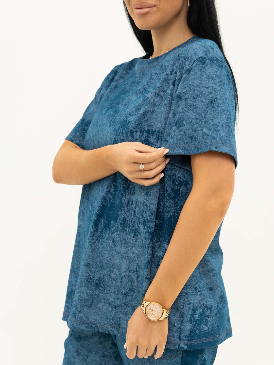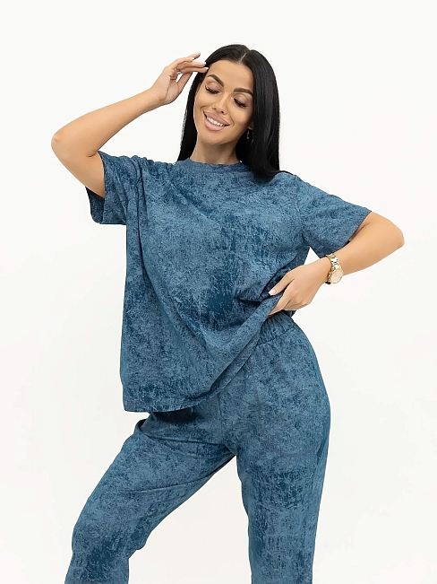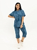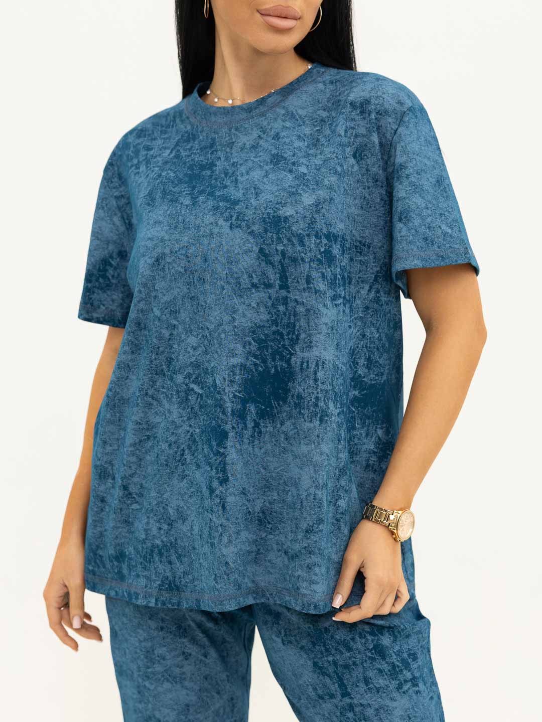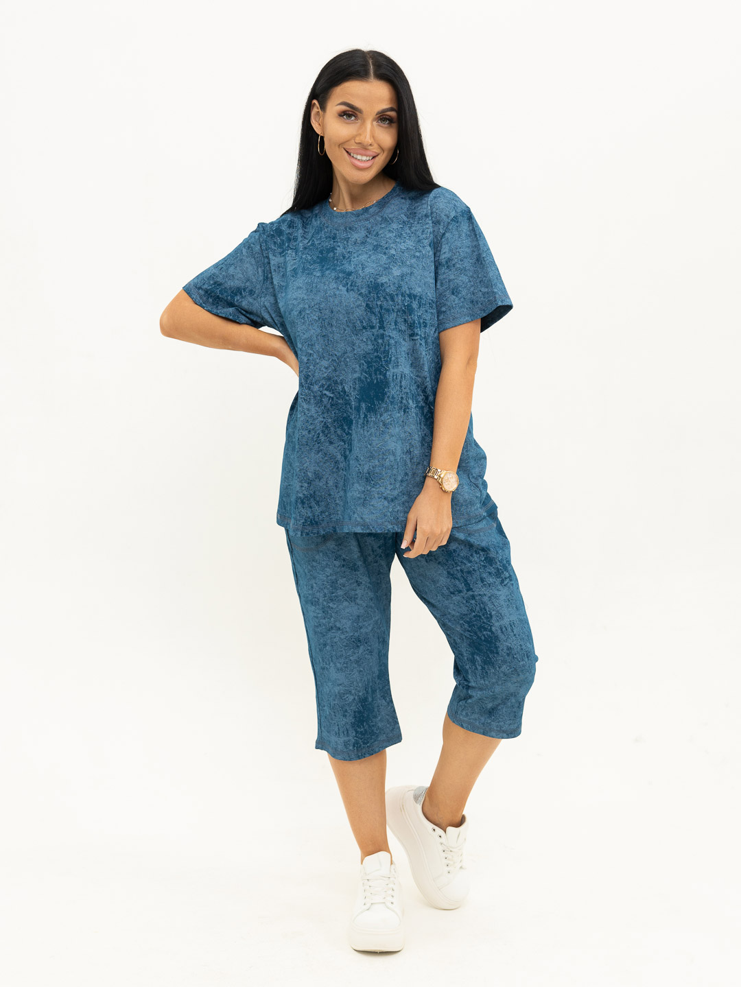 Костюм женский трикотажный - футболка и бриджи. Футболка свободного силуэта в стиле оверсайз, со спущенным рукавом и округлой горловиной. Бриджи с широким поясом на резинке, для идеальной посадки и удобными накладными карманами. Актуальный летний дизайн в стиле - варёнка, создаст яркий неповторимый образ на каждый день.