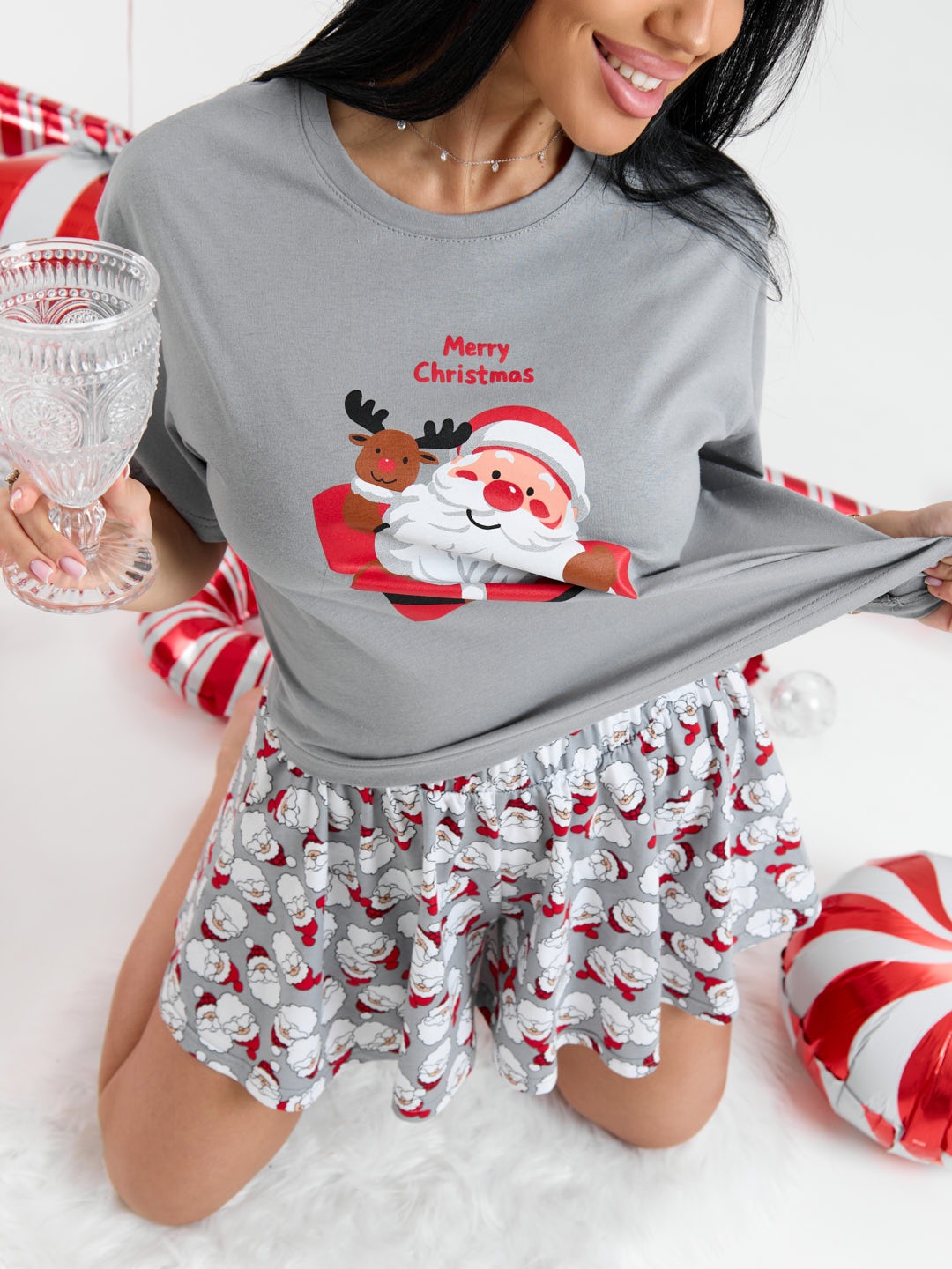 Этот очаровательный комплект станет незабываемым подарком для себя или близких на Новый год. Сочетание праздничного дизайна, комфорта и качества делает эту пижаму настоящим сокровищем для тех, кто ценит уют и стиль в домашней одежде. Создайте волшебную атмосферу праздника с нашей пижамой.