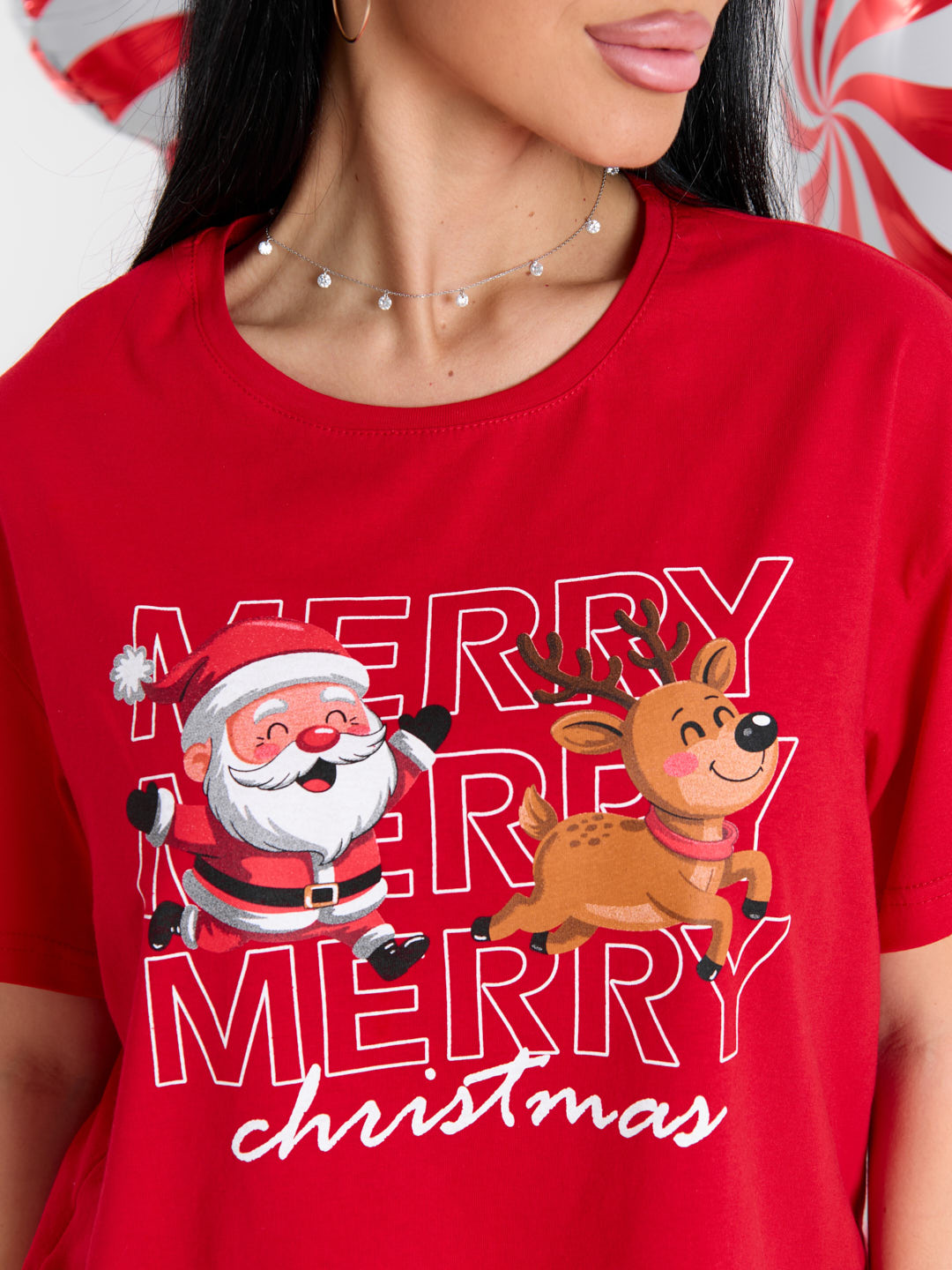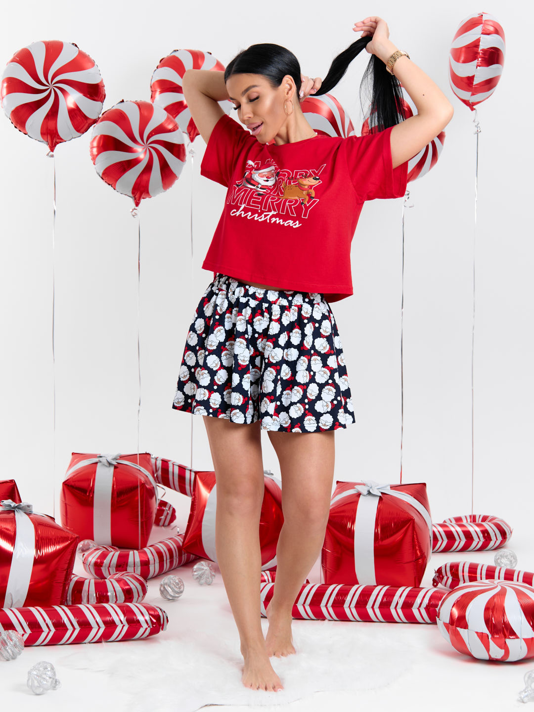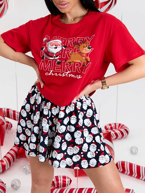 Очаровательная новогодняя пижама-двойка - идеальный выбор для создания праздничного настроения в домашней обстановке! В комплект входят: • Футболка с новогодним дизайном • Шорты-юбка Этот очаровательный комплект станет незабываемым подарком для себя или близких на Новый год. Сочетание праздничного дизайна, комфорта и качества делает эту пижаму настоящим сокровищем для тех, кто ценит уют и стиль в домашней одежде. Создайте волшебную атмосферу праздника с нашей пижамой.