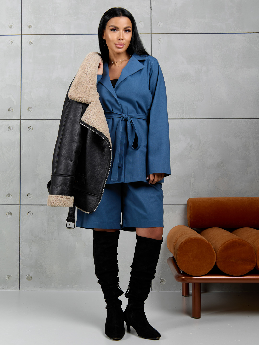 Женский костюм 2092 состоит из пиджака с длинными рукавами и свободных шорт. Костюм с шортами отшивается из натуральной ткани льна с добавлением вискозы. Модный оверсайз крой и актуальные расцветки не оставят Вас равнодушными.