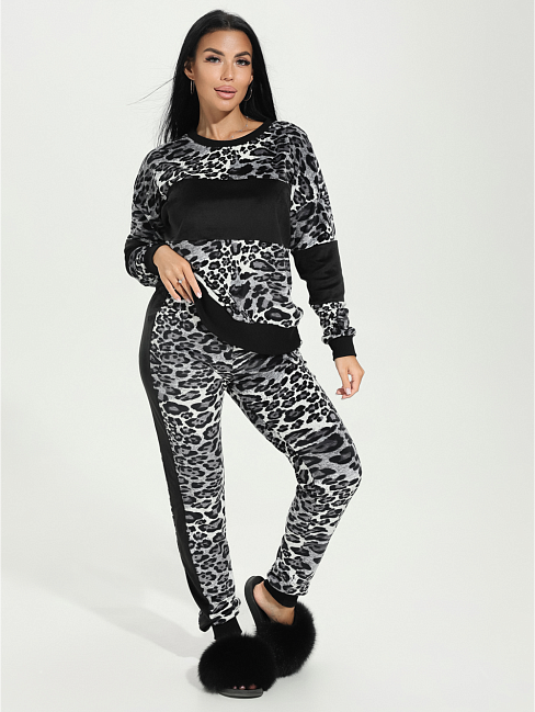 Костюм женский Намибия состоит из свитшота и брюк. Главным преимуществом велюра можно назвать его невероятную прочность. Он считается одним из самых долговечных материалов, который легко переносит различные воздействия. К тому же, изделия из этой ткани абсолютно не мнутся, а значит, что их не нужно гладить. Рукава и низ брюк на манжетах.