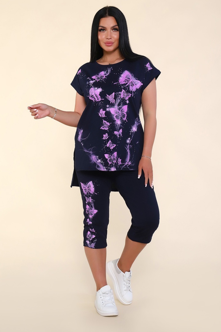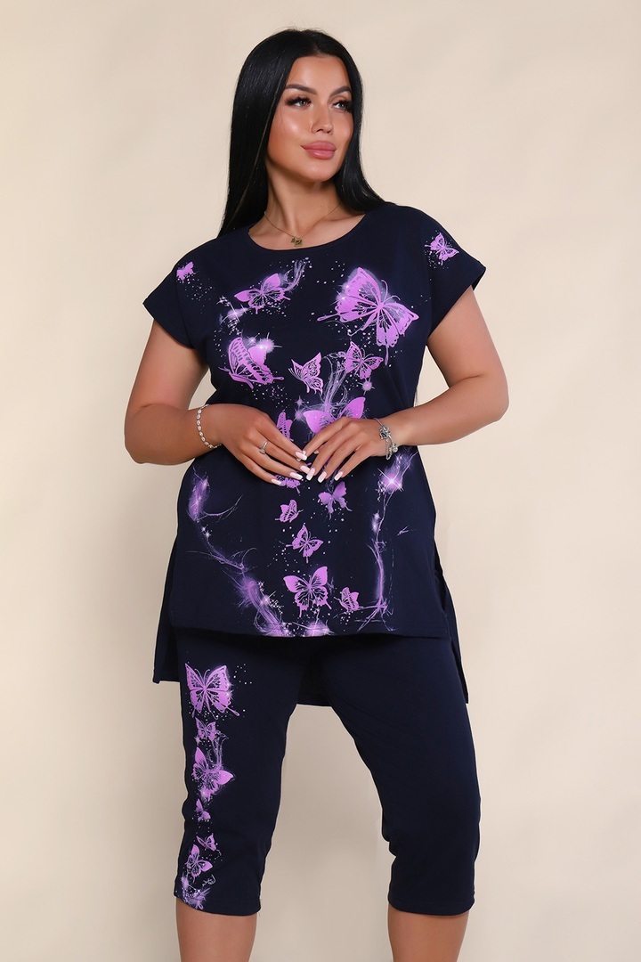 Женский костюм с бриджами из кулирки — это лёгкий и комфортный комплект, выполненный из 100% хлопка. Костюм хорошо сидит на фигуре, подчёркивает её достоинства, подходит для повседневной носки.