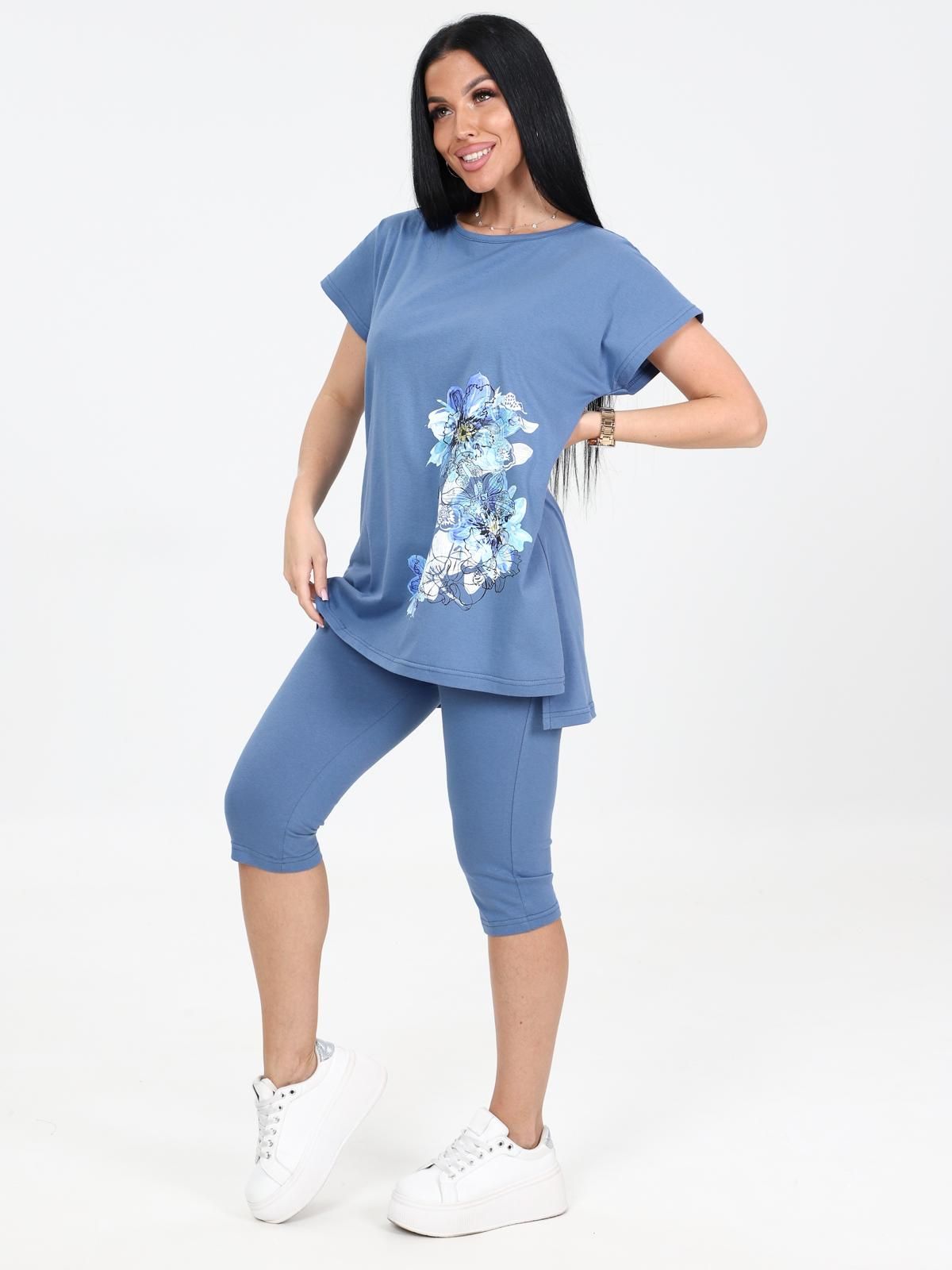 Женский костюм «Нертела» — это стильный и удобный комплект, состоящий из футболки и бриджей.