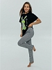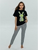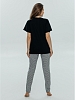 Красивый домашний костюм женский из трикотажа высокого качества. Костюм Николь  состоит из прямых, длинных, слегка зауженных, пижамных штанов в клетку с карманами и футболки с коротким рукавом с интересным принтом. Широкий круглый вырез футболки создает ощущение комфорта и воздушности, при этом вы не будете чувствовать себя стесненными, а резинка на поясе брюк обеспечивает плотную и удобную посадку, они не сползают вниз и не заставят чувствовать дискомфорт. Мягкая на ощупь ткань в сочетании с дышащими материалами обеспечивает спокойный отдых.