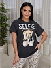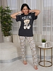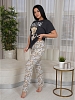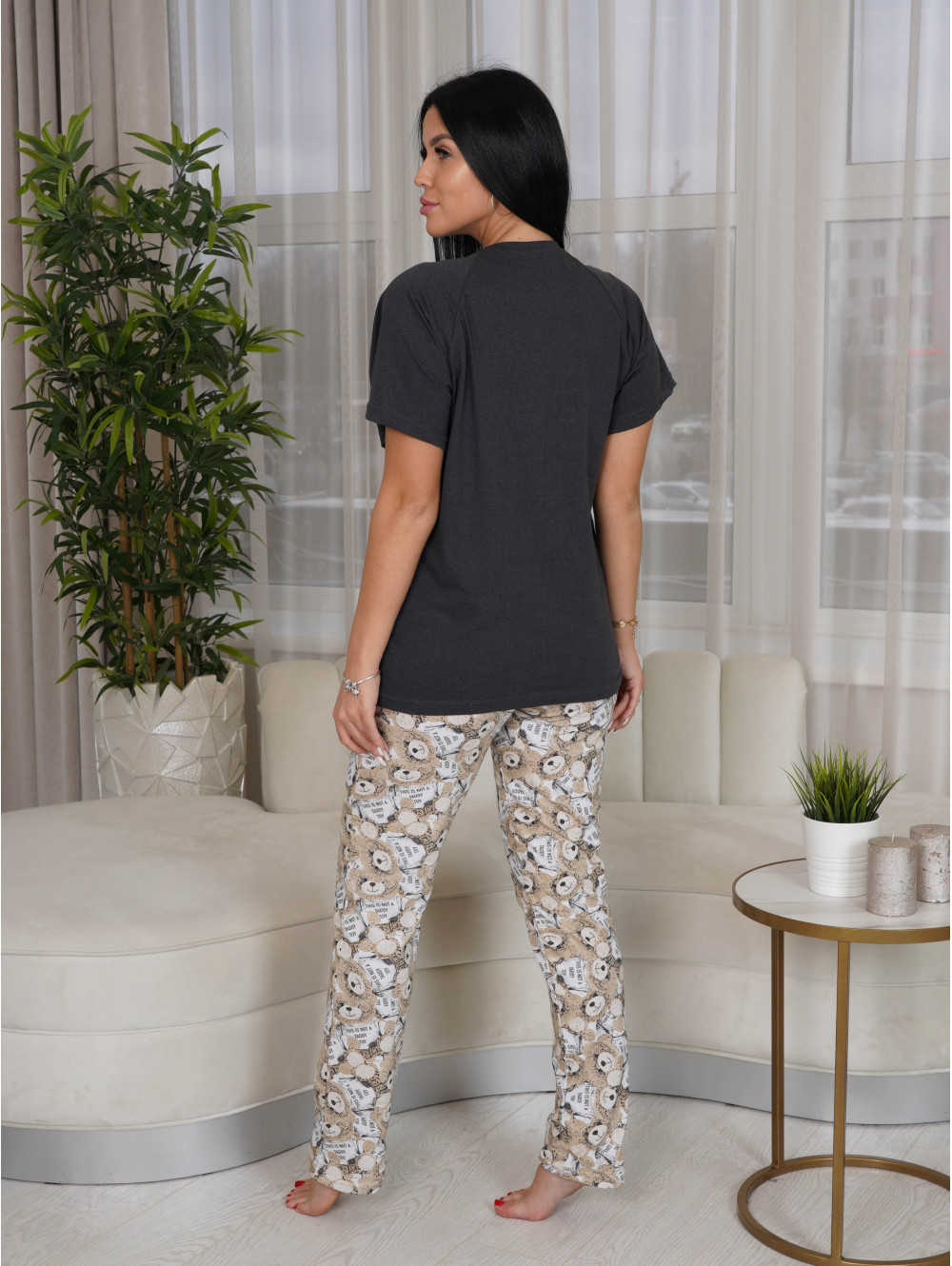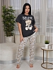 Красивый домашний костюм женский из трикотажа высокого качества. Костюм Николь состоит из прямых, длинных, слегка зауженных, пижамных штанов в клетку с карманами и футболки с коротким рукавом с интересным принтом. Широкий круглый вырез футболки создает ощущение комфорта и воздушности, при этом вы не будете чувствовать себя стесненными, а резинка на поясе брюк обеспечивает плотную и удобную посадку, они не сползают вниз и не заставят чувствовать дискомфорт. Мягкая на ощупь ткань в сочетании с дышащими материалами обеспечивает спокойный отдых.