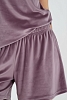 Костюм молодежный из трикотажного полотна «велюр-стрейч», состоящий из футболки и шорт. Футболка – классического покроя, с короткими цельнокроеными рукавами и горловиной овальной формы, обработанной втачной планкой. Шорты - средней длины, расширенные книзу, с эластичной тесьмой по талии.