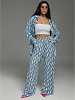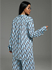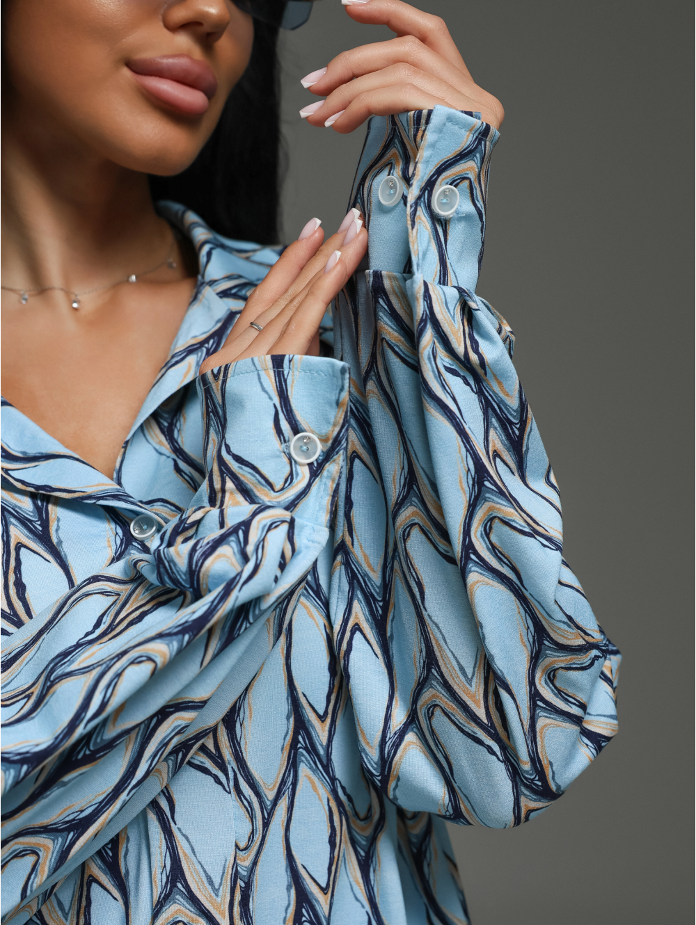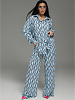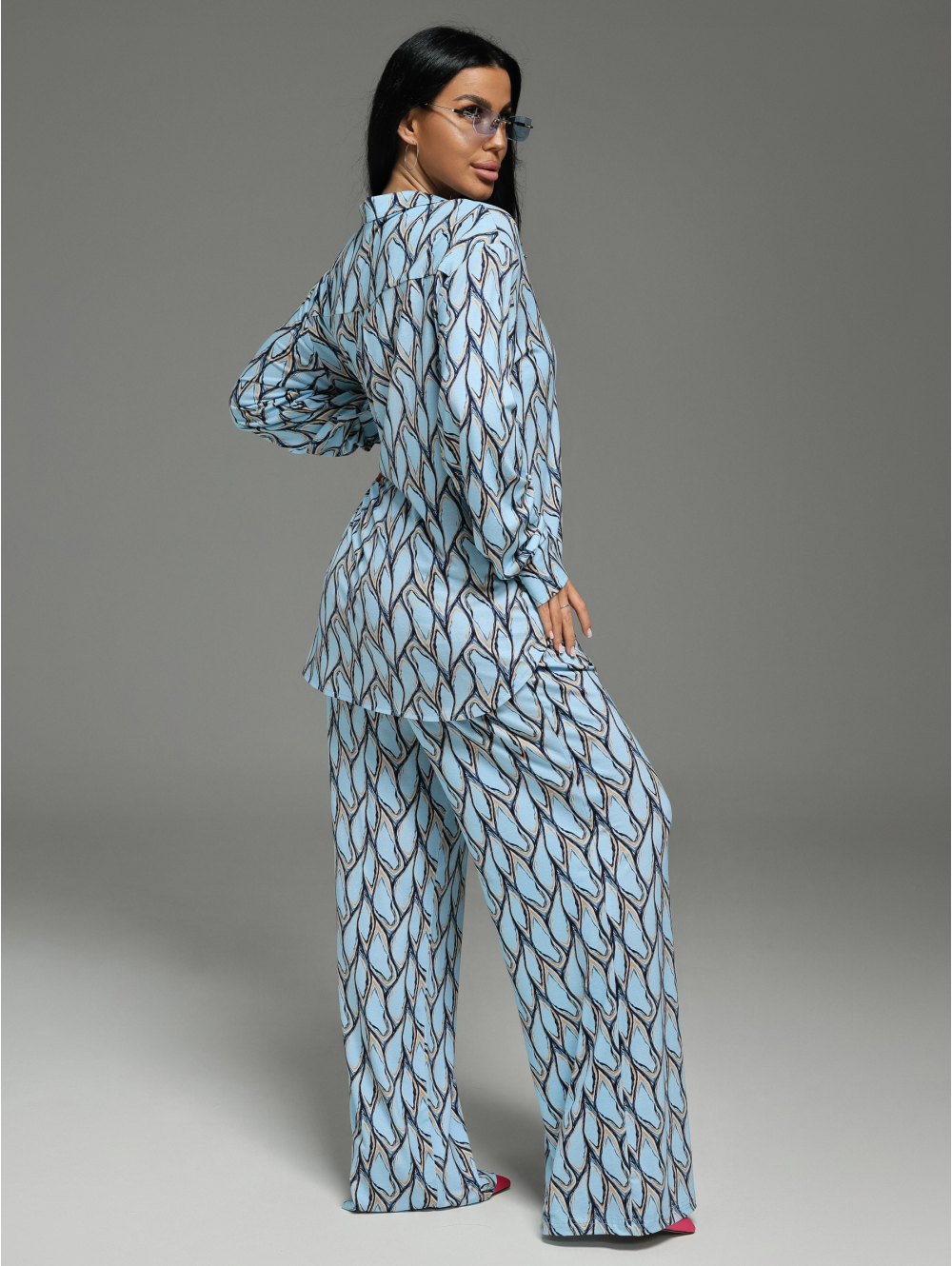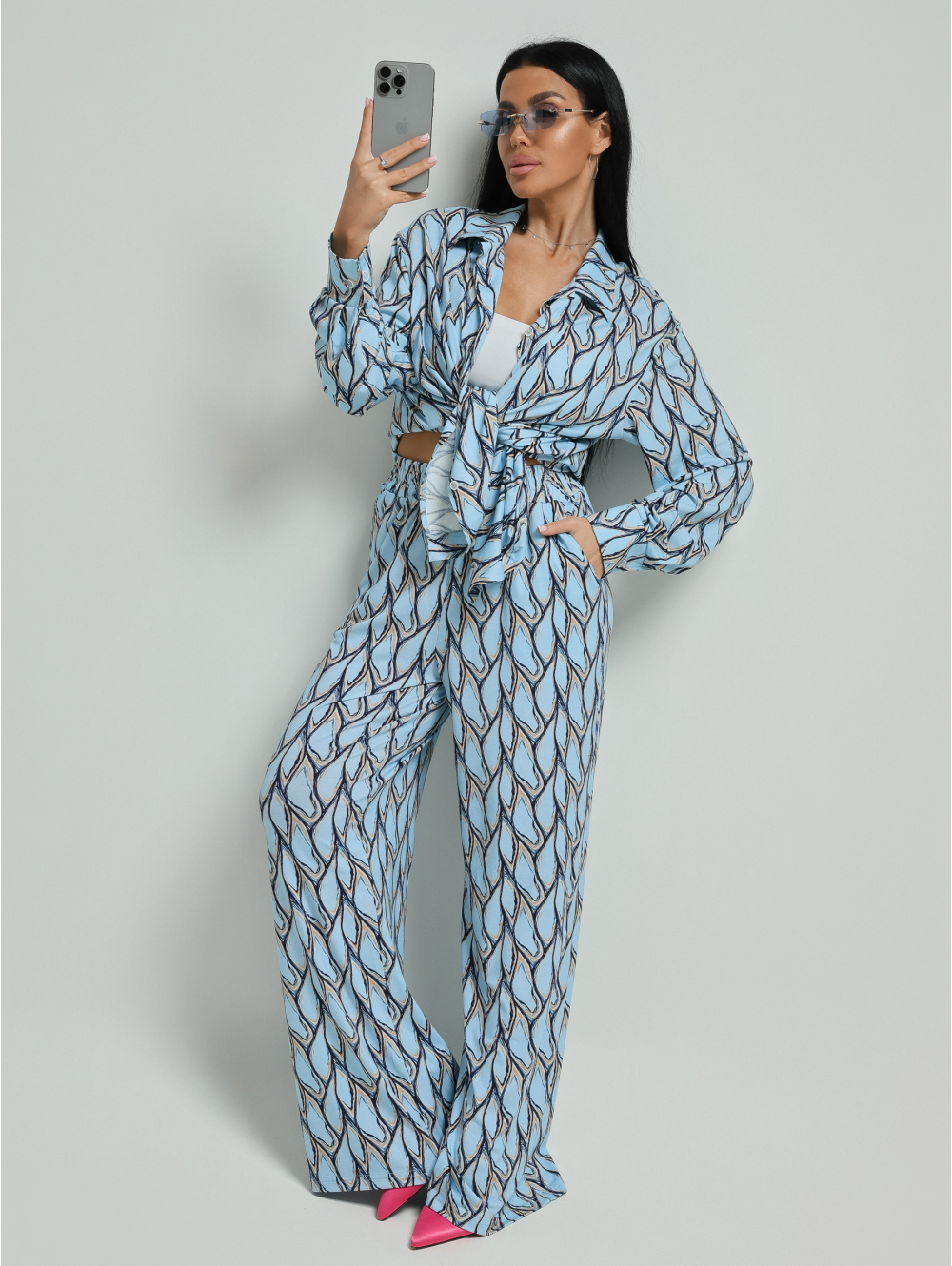Костюм женский Парадиз состоит из рубашки и брюк. Рубашка прямого силуэта с центральной бортовой застежкой на пуговицы, с втачным воротником, с длинным втачным рукавом с манжетой. Брюки прямые от бедра с отрезным поясом.