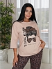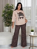Классический домашний комплект для дома с яркими и уникальными принтами, рисунками. Состоит из широких брюк палаццо с высокой посадкой и футболки с рукавом три четверти. Удобные брюки на резинке на талии не стеснят движения даже во время активной игры с ребенком, а майка свободного кроя скроет недостатки фигуры. Женский домашний костюм выполнен из качественного и мягкого 100% хлопка, что позволяет коже дышать, поэтому в нем комфортно заниматься бытом, спать и встречаться с близкими на домашних вечерах. Пижамный оверсайз (oversize) костюм отлично подойдёт девочкам, девушкам, женщинам и бабушкам, за счёт широкой размерной сетки.