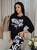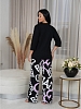Классический домашний комплект для дома с яркими и уникальными принтами, рисунками. Состоит из широких брюк палаццо с высокой посадкой и футболки с рукавом три четверти. Удобные брюки на резинке на талии не стеснят движения даже во время активной игры с ребенком, а майка свободного кроя скроет недостатки фигуры. Женский домашний костюм выполнен из качественного и мягкого 100% хлопка, что позволяет коже дышать, поэтому в нем комфортно заниматься бытом, спать и встречаться с близкими на домашних вечерах. Пижамный оверсайз (oversize) костюм отлично подойдёт девочкам, девушкам, женщинам и бабушкам, за счёт широкой размерной сетки.