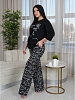 Классический домашний комплект для дома с яркими и уникальными принтами, рисунками. Состоит из широких брюк палаццо с высокой посадкой и футболки с рукавом три четверти. Удобные брюки на резинке на талии не стеснят движения даже во время активной игры с ребенком, а майка свободного кроя скроет недостатки фигуры. Женский домашний костюм выполнен из качественного и мягкого 100% хлопка, что позволяет коже дышать, поэтому в нем комфортно заниматься бытом, спать и встречаться с близкими на домашних вечерах. Пижамный оверсайз (oversize) костюм отлично подойдёт девочкам, девушкам, женщинам и бабушкам, за счёт широкой размерной сетки.