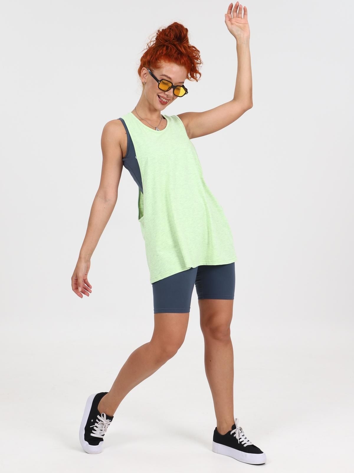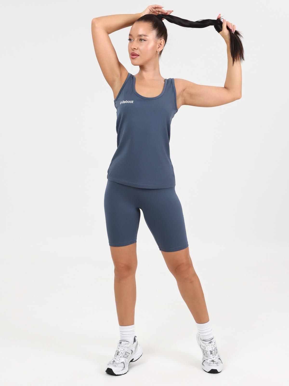 Костюм «Потенциал» — это практичный комплект, состоящий из майки и легинсов-шорт, выполненный из качественного трикотажного полотна.