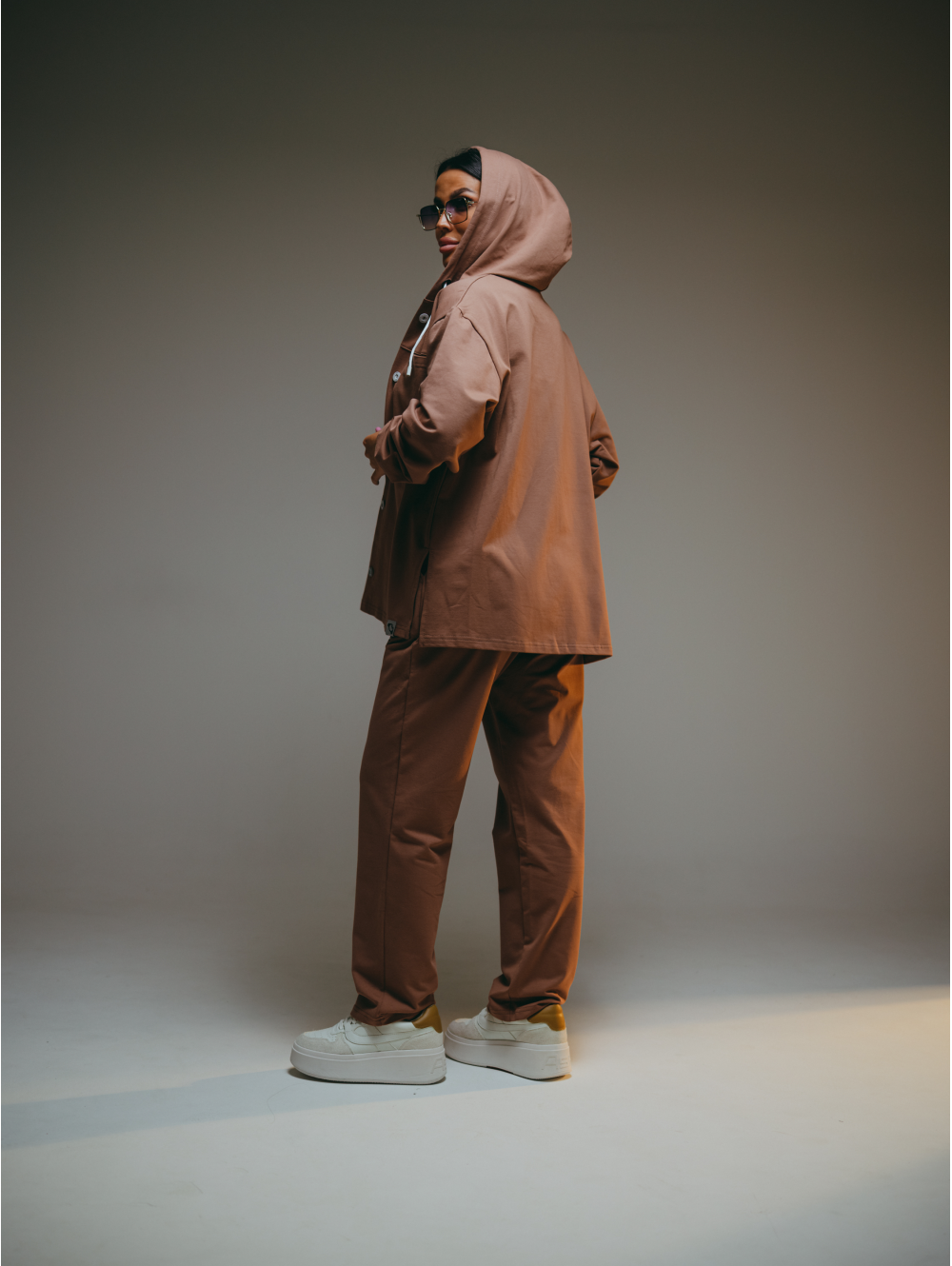 Представляем Вам наш костюм ПРЕСТИЖ,в стиле оверсайз, состоящий из кофты с капюшоном и на пуговицах и брюк с карманами. На полочке также находятся накладные карманы. Оригинальный крой придаст чувство уверенности. Изделие изготовлено из футера двунитка с лайкрой. Футер -это очень эластичный и плотный трикотаж, мягкий, а потому приятный на ощупь и комфортный в носке. Поверхность трикотажа матовая, ровная или в мелкий, слегка просматриваемый, рубчик – это зависит от технологии производства, благодаря эластичной нити костюм надолго сохранит форму. Это прекрасный вариант для прогулки, работы и приятного вечера.