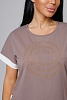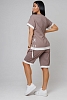 Костюм женский с бермудами идеальное решение для летнего гардероба. Костюм сшит из трикотажного полотна кулирки с лайкрой, которая придает ему дополнительную мягкость и удобство в носке. Комплект подходит как для повседневной носки, так и для отдыха на даче. Футболка имеет округлый вырез, короткие цельнокроеные рукава, на груди футболки принт в виде мерцающих страз. Бриджи выполнены из ткани компаньона, по линии талии мягкая эластичная резинка.