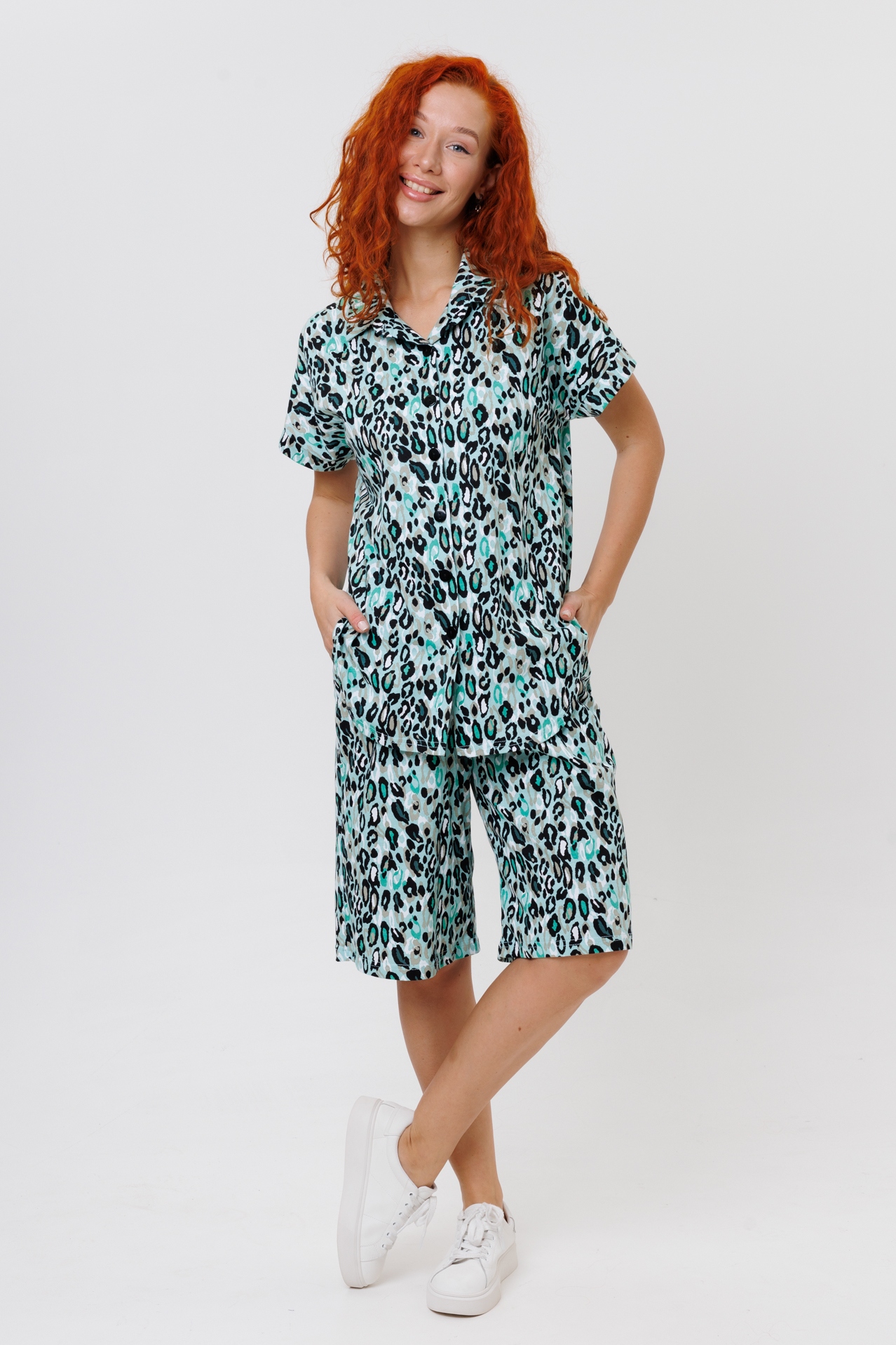 Женский костюм с бермудами из кулирки — это комплект одежды, состоящий из футболки и шорт-бермуд, изготовленных из трикотажного полотна кулирки. Такая одежда отличается лёгкостью, комфортом и подходит для повседневной носки, отдыха или домашнего использования.