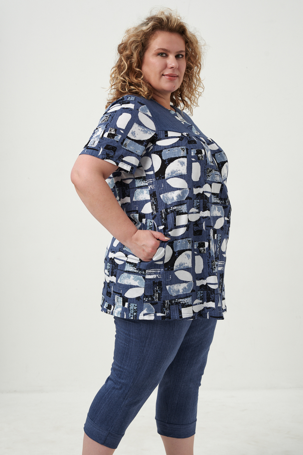 Футболка свободного кроя с коротким рукавом и модным принтом. Качественная аппликация с вышивкой. Бриджи облегающие.