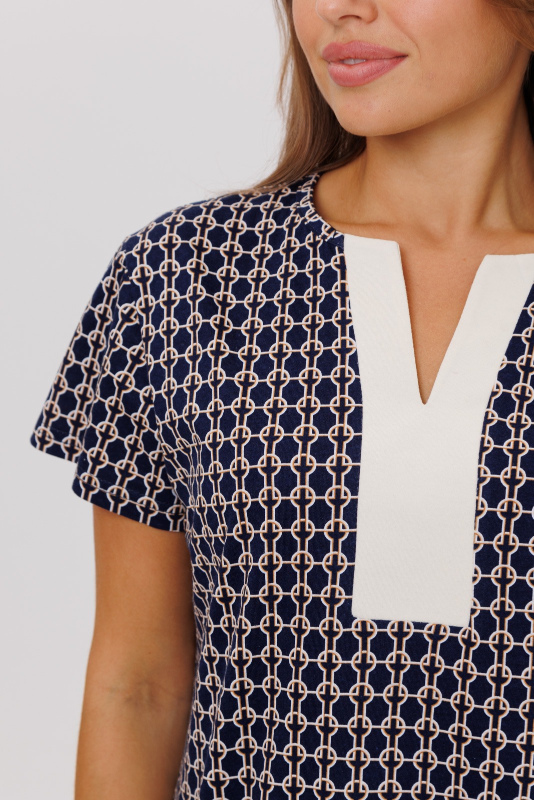 Футболка с коротким рукавом с V-образной отделкой горловины.