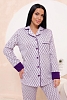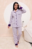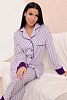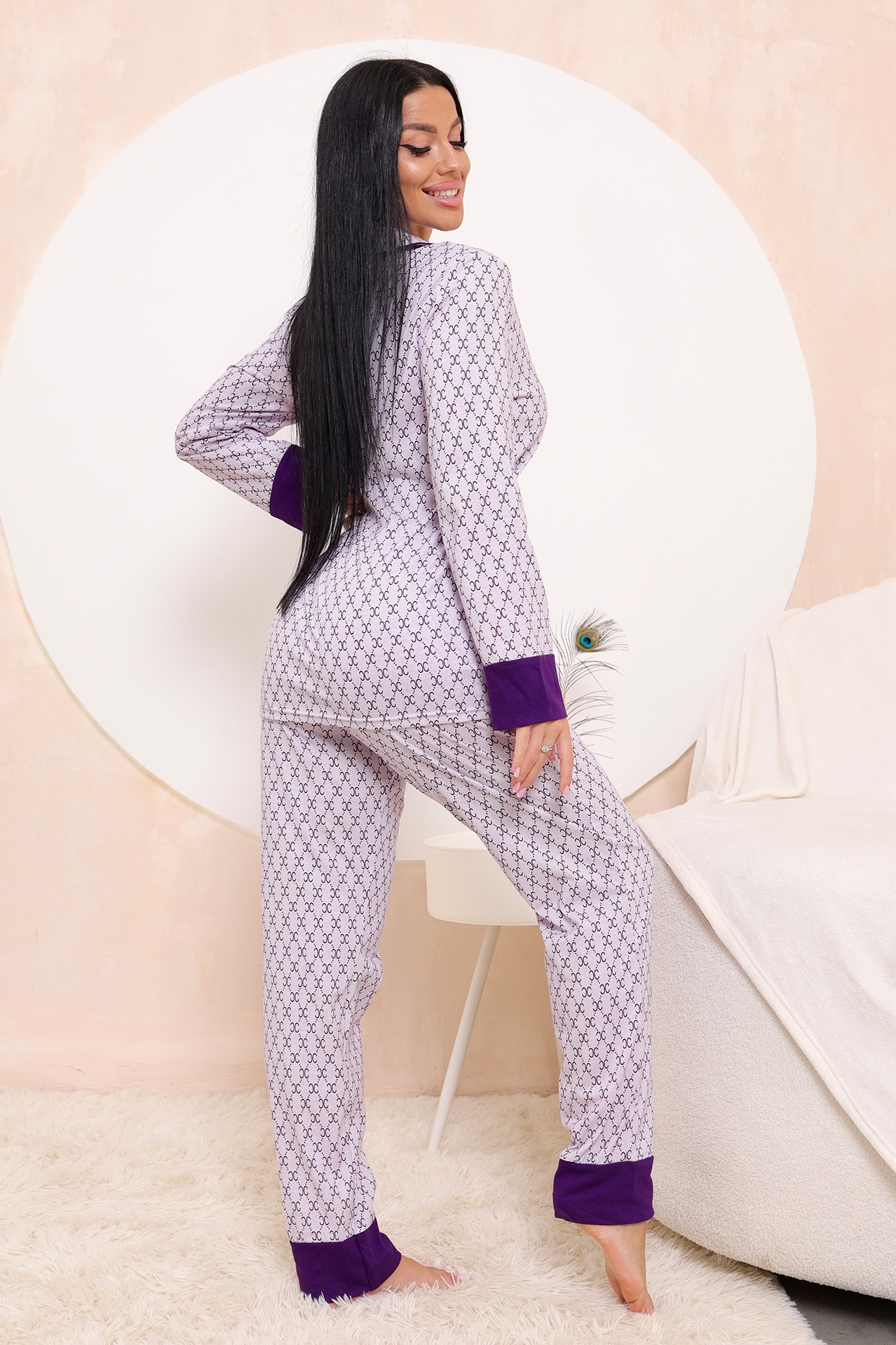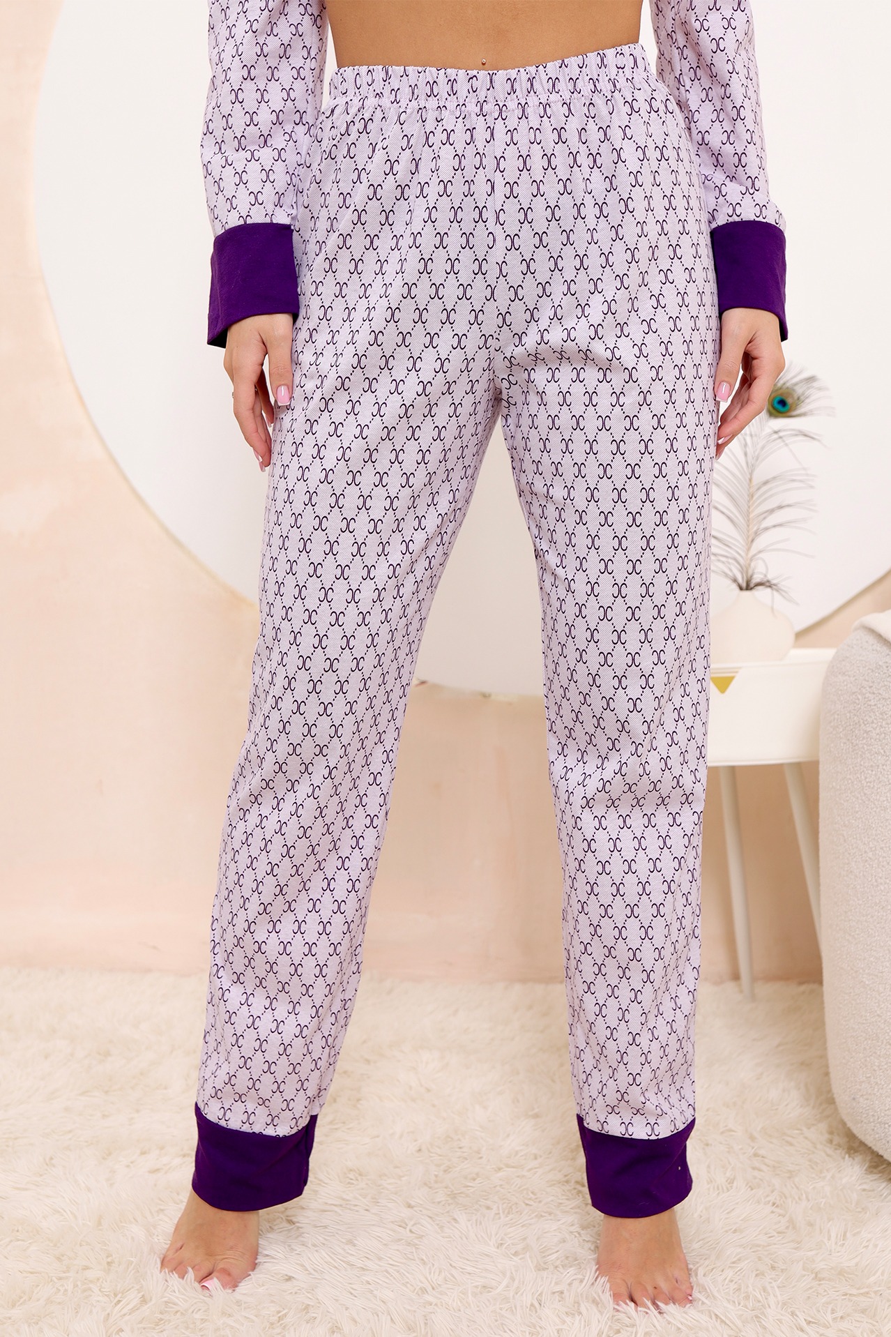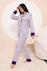 Роскошный домашний костюм с брюками 2072 / Фиолетовый. Кофта в пиджачном стиле, на пуговицах, с длинным рукавом. Широкие манжеты контрастного цвета на рукавах и брюках – модный тренд, а также яркий стилеобразующий элемент.