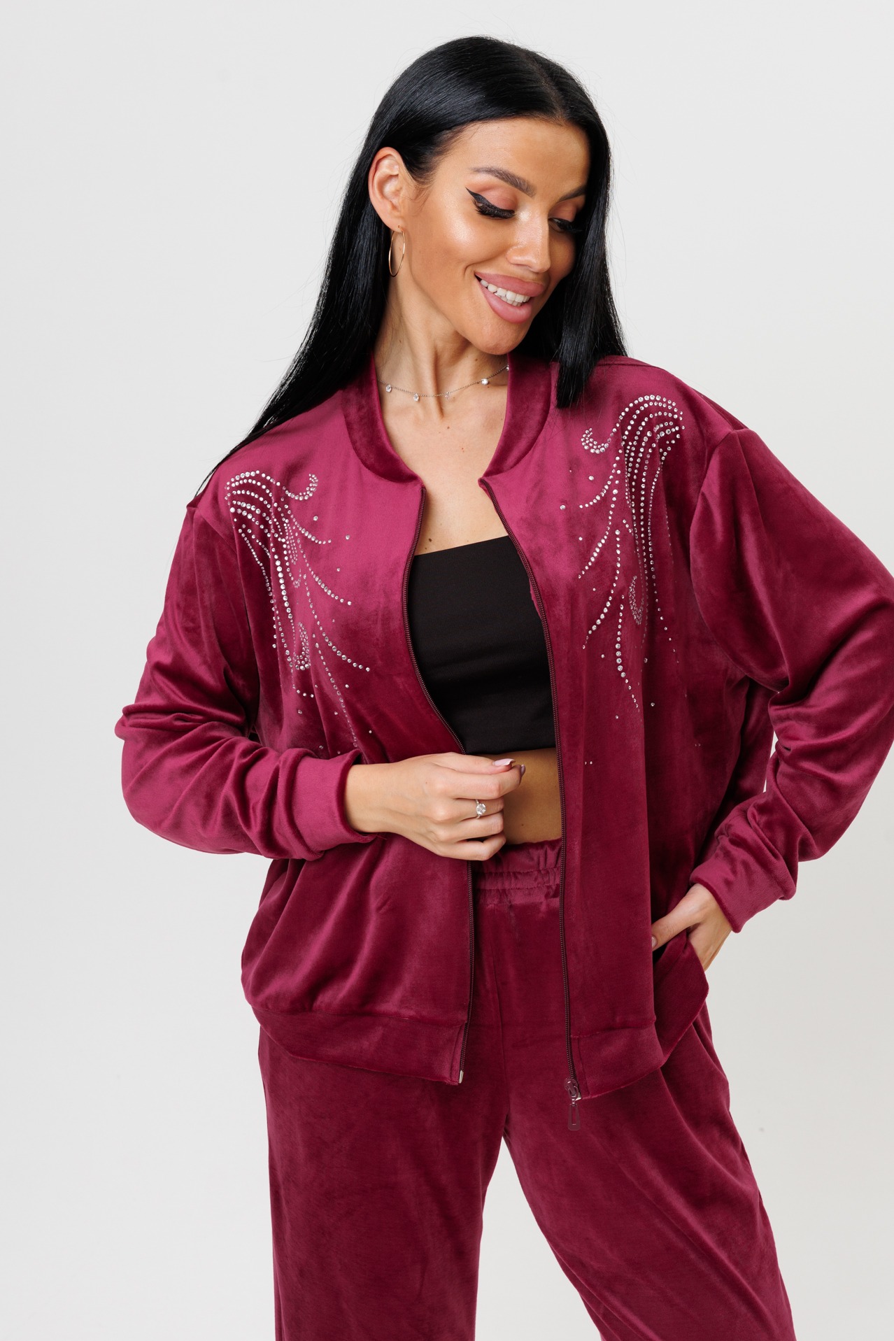 Женский костюм с брюками 2227 / Бордовый