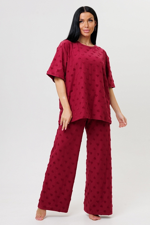 Костюм-двойка 2232/2 состоит из футболки и брюк, выполнен из приятной к телу ткани махра-жаккард. Комплект обеспечивает полную свободу движений и комфорт при повседневной носке.