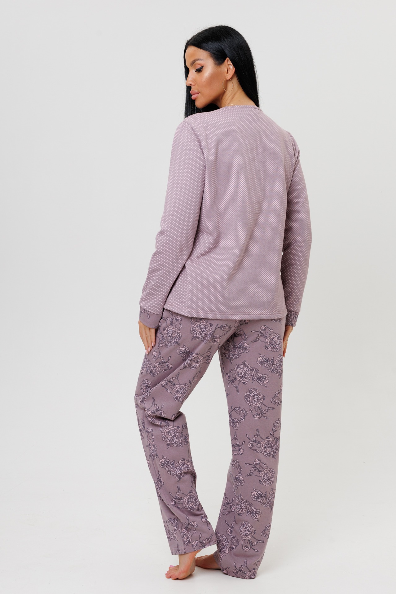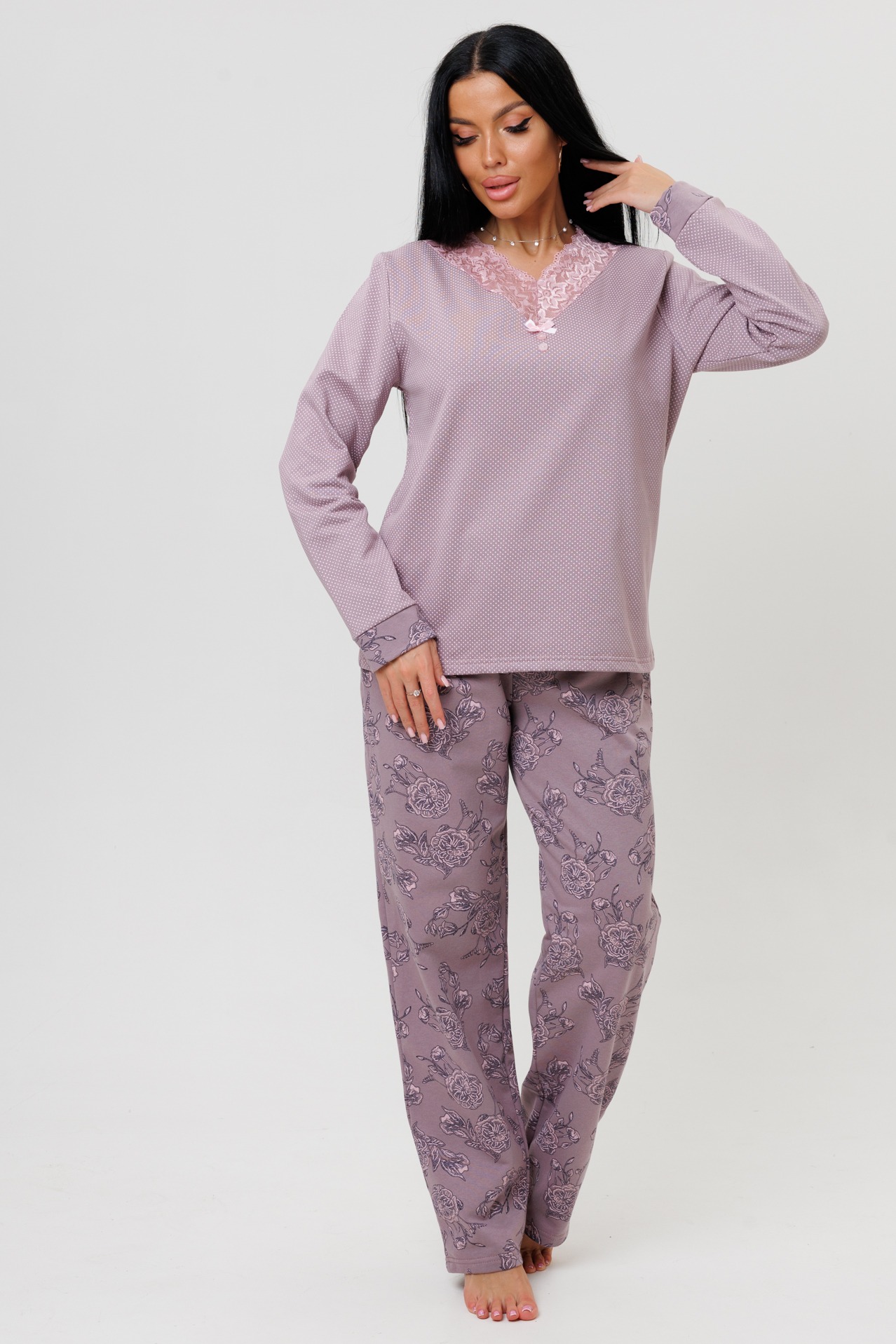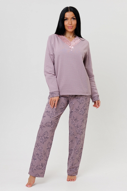 Женский костюм с брюками 2239 представляет собой комплект домашней одежды, состоящий из лонгслива и брюк.