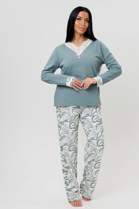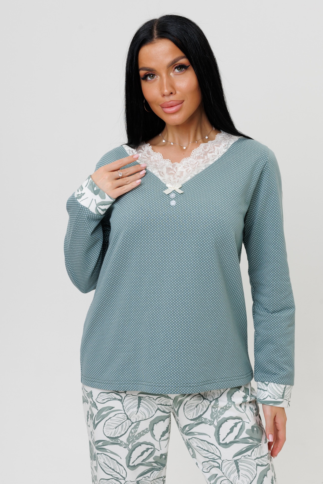 Женский костюм с брюками 2239 представляет собой комплект домашней одежды, состоящий из лонгслива и брюк.