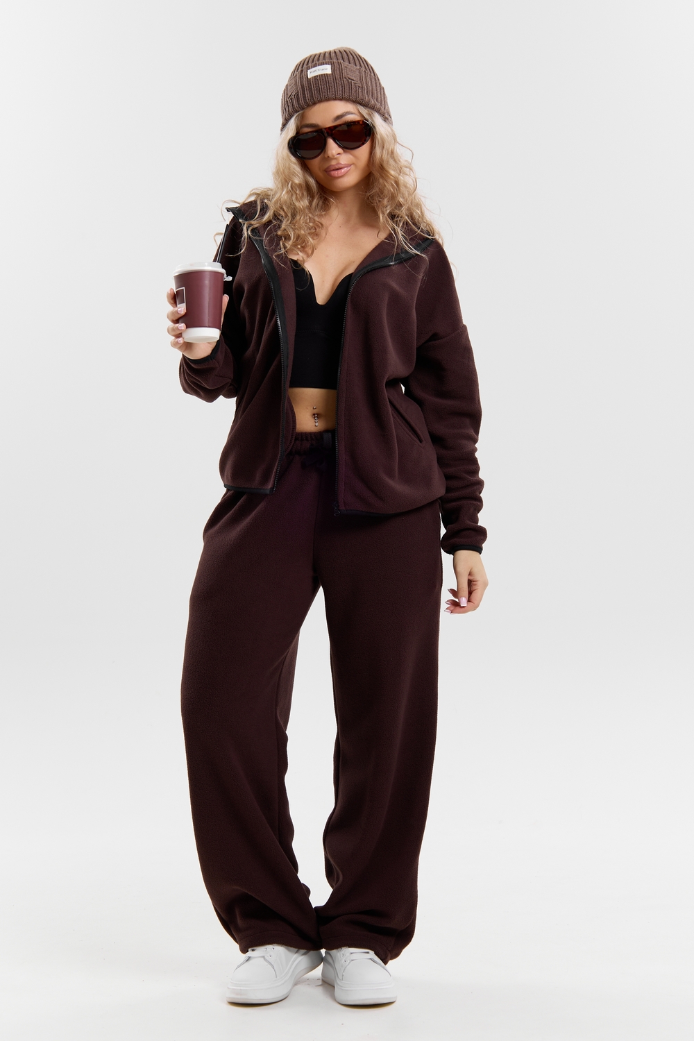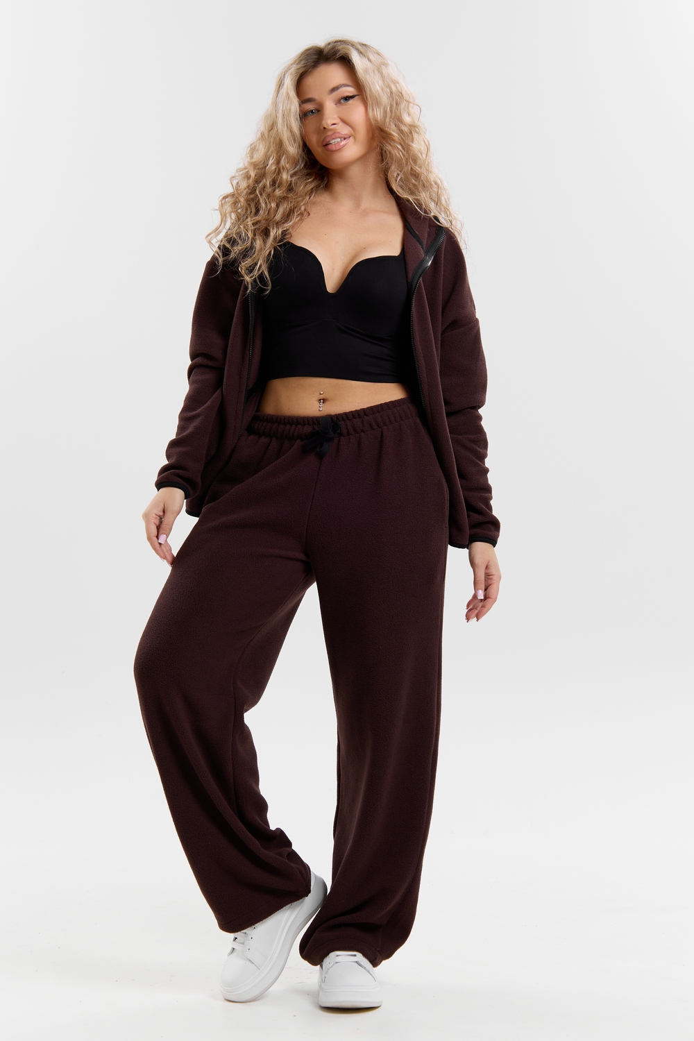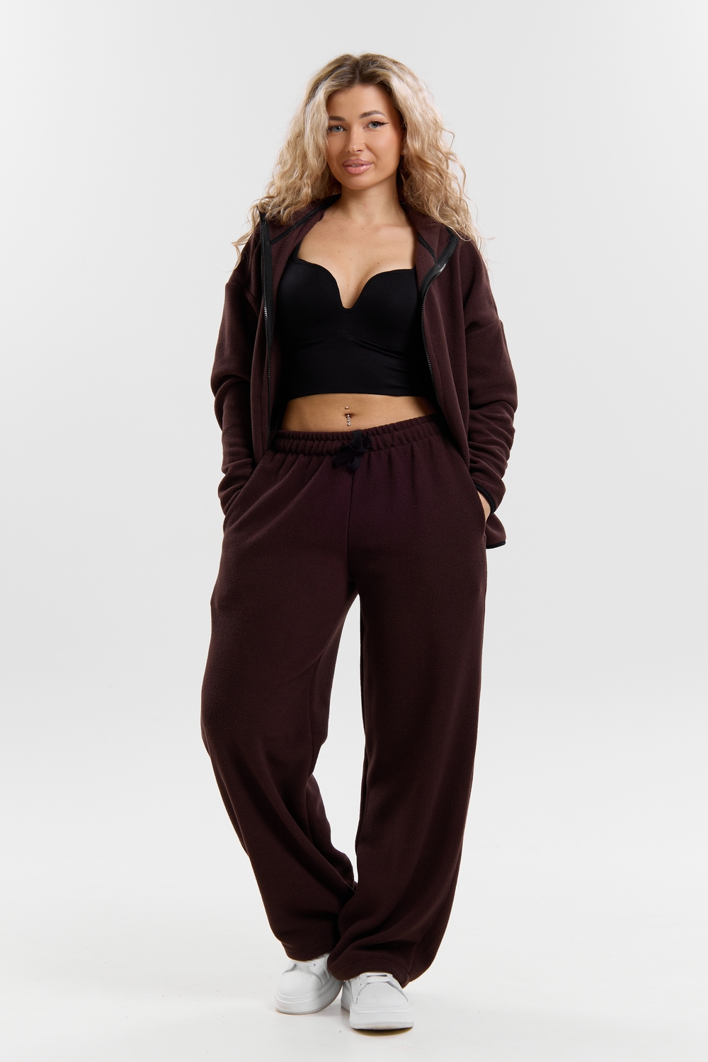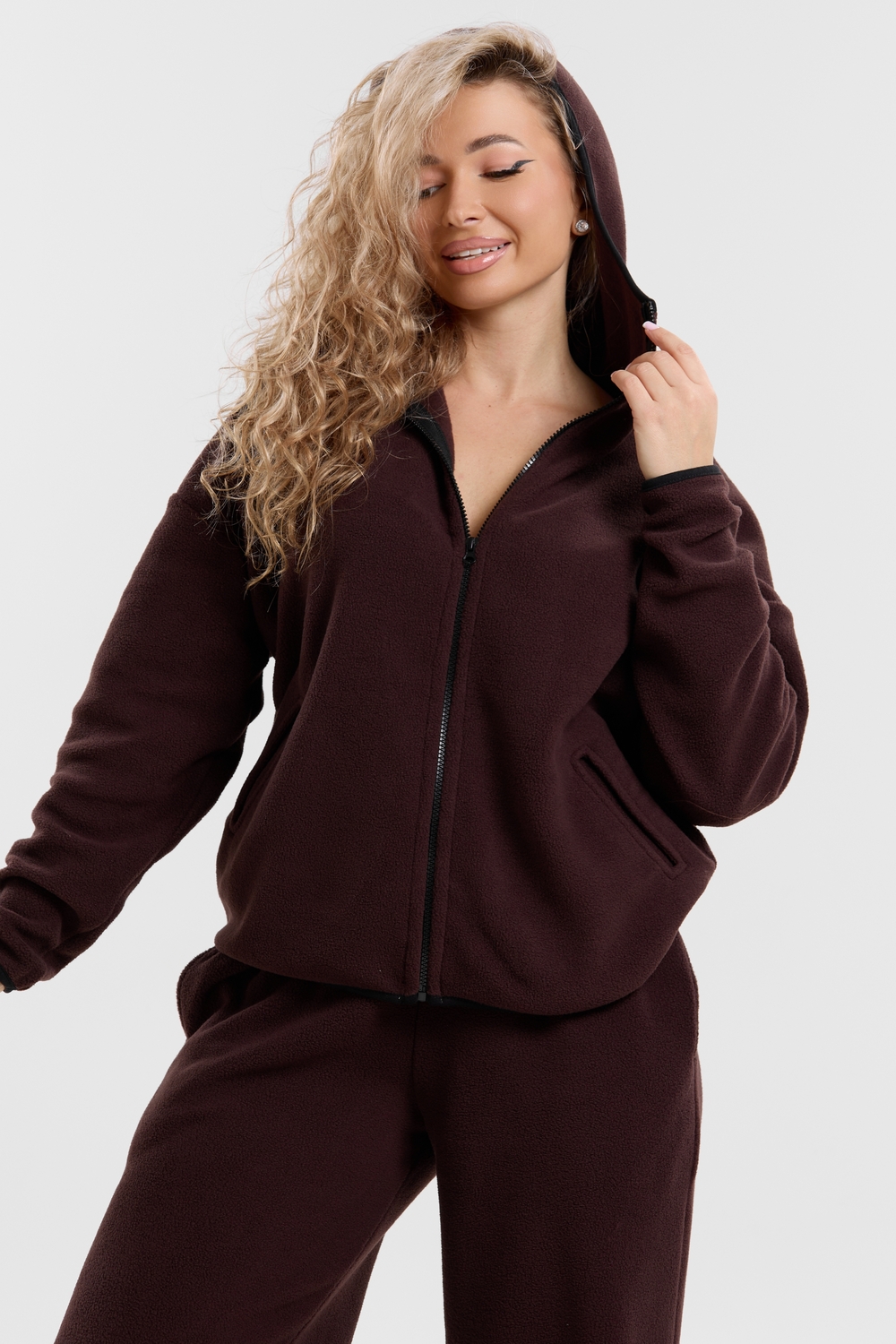 Флисовый костюм на молнии станет незаменимой вещью в вашем гардеробе. Костюм выполнен из плотной, мягкой ткани , что делает его очень теплым и приятным к телу. Благодаря высокому вороту, а также комфортному капюшону, надежно защитит ваше горло от прохлады в любое время года – будь то осень, весна, зима или прохладное лето. Качественная молния добавляет стильный акцент, а удобный замок обеспечивает легкое надевание и снятие. Резинка на поясе обеспечивает идеальную посадку и комфорт, брюки мягко облегают талию, не сдавливая и не сползая. Шнур на поясе добавляет не только стильный акцент, но и даёт возможность индивидуально регулировать посадку. Резинки на манжетах фиксируют брючины, затягивая с помощью фиксатора, создавая аккуратный новый образ. Такой крой визуально вытягивает ноги и придаёт образу собранность. Свободный фасон багги гарантирует свободу движений и комфорт в течение всего дня. Прорезные боковые карманы - незаменимый элемент для удобства. Они не выпирают, не утяжеляют силуэт и в то же время добавляют практичности. В них можно удобно разместить разные мелочи- это маленькая деталь, которая делает модель ещё более функциональной. Флисовый костюм помогает создавать стильные образы. Его универсальный крой позволяет использовать его как повседневную одежду для прогулок, так и для дома. Модный фасон подойдет для женщин любого телосложения.