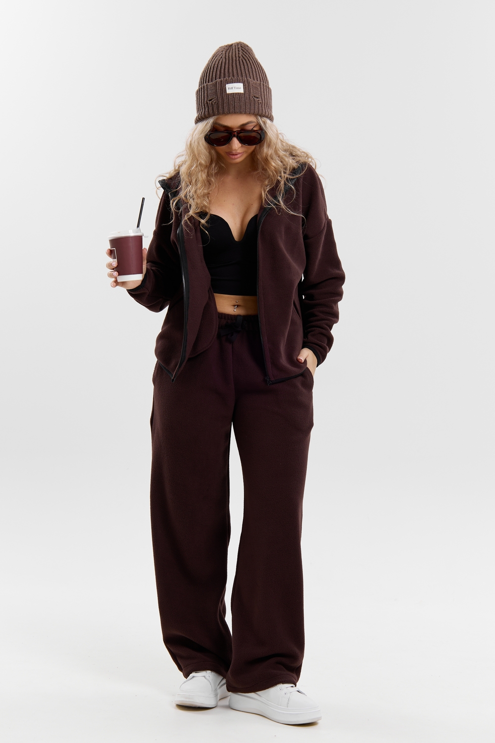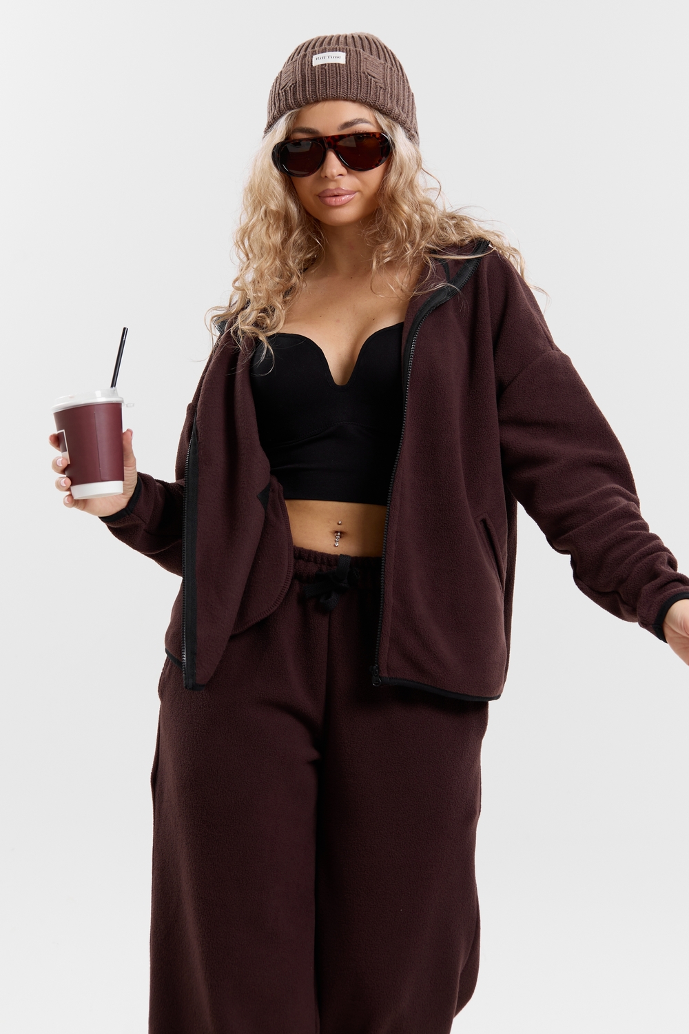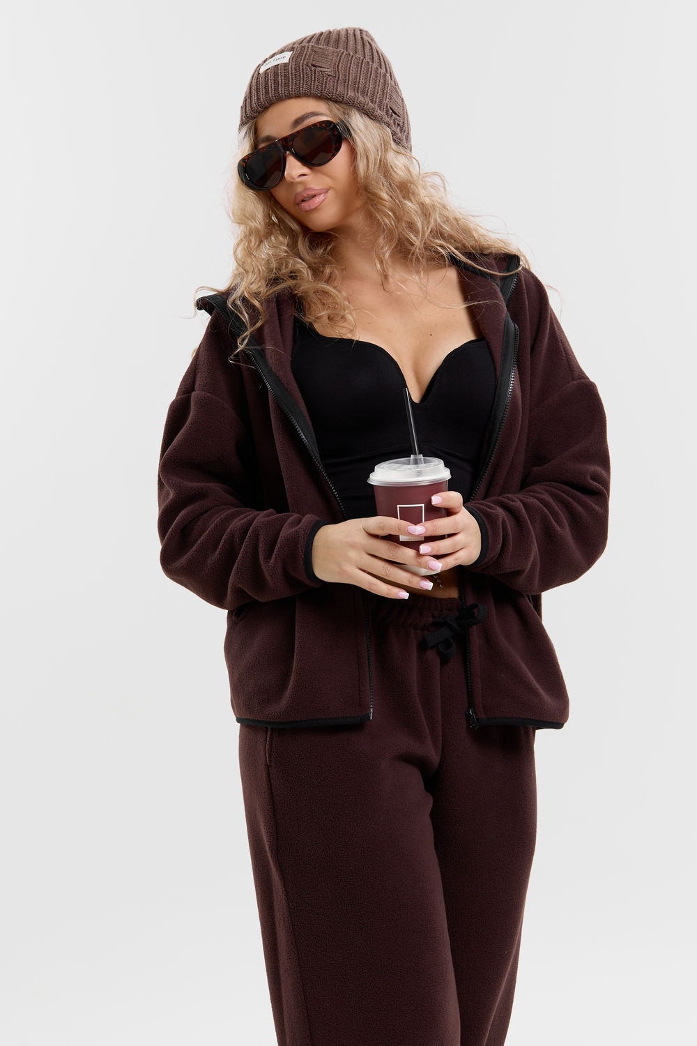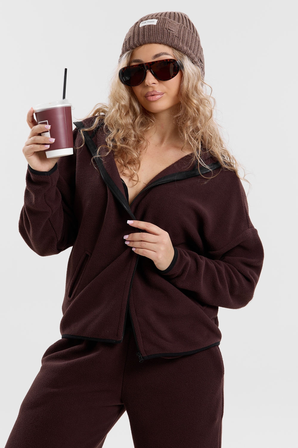 Флисовый костюм на молнии станет незаменимой вещью в вашем гардеробе. Костюм выполнен из плотной, мягкой ткани , что делает его очень теплым и приятным к телу. Благодаря высокому вороту, а также комфортному капюшону, надежно защитит ваше горло от прохлады в любое время года – будь то осень, весна, зима или прохладное лето. Качественная молния добавляет стильный акцент, а удобный замок обеспечивает легкое надевание и снятие. Резинка на поясе обеспечивает идеальную посадку и комфорт, брюки мягко облегают талию, не сдавливая и не сползая. Шнур на поясе добавляет не только стильный акцент, но и даёт возможность индивидуально регулировать посадку. Резинки на манжетах фиксируют брючины, затягивая с помощью фиксатора, создавая аккуратный новый образ. Такой крой визуально вытягивает ноги и придаёт образу собранность. Свободный фасон багги гарантирует свободу движений и комфорт в течение всего дня. Прорезные боковые карманы - незаменимый элемент для удобства. Они не выпирают, не утяжеляют силуэт и в то же время добавляют практичности. В них можно удобно разместить разные мелочи- это маленькая деталь, которая делает модель ещё более функциональной. Флисовый костюм помогает создавать стильные образы. Его универсальный крой позволяет использовать его как повседневную одежду для прогулок, так и для дома. Модный фасон подойдет для женщин любого телосложения.