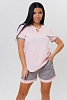 Костюм 2142 / Розовый сшит из трикотажного полотна 100% хлопка. Костюм состоит из футболки и шорт. Футболка с короткими втачанными рукавами и круглым вырезом. Шорты выполнены из ткани компаньона с оригинальным принтом. Такой костюм с шортами можно использовать не только как комплект для дома, но и сна.