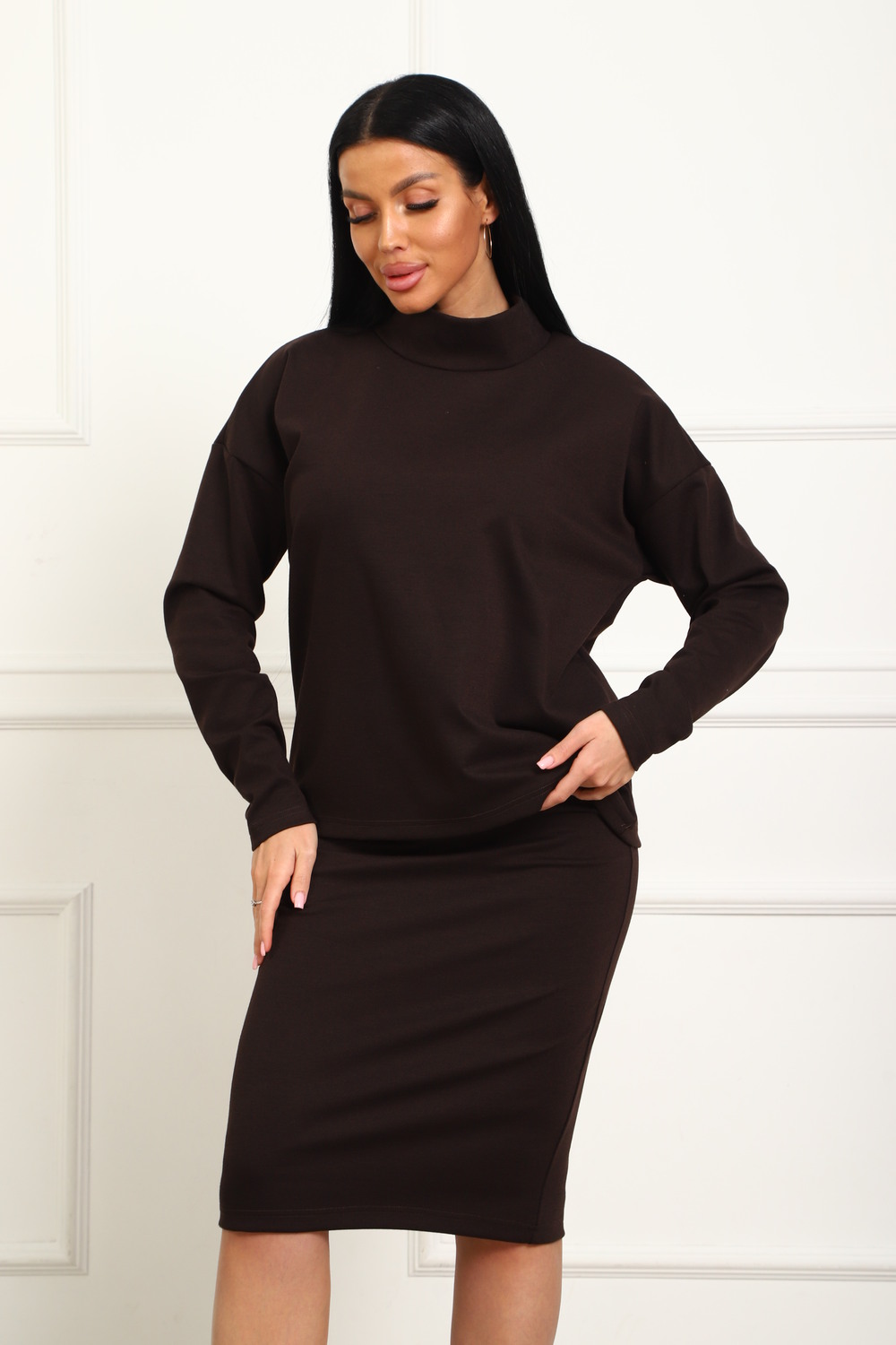 Женский костюм с юбкой 20690 / темно-коричневый
