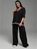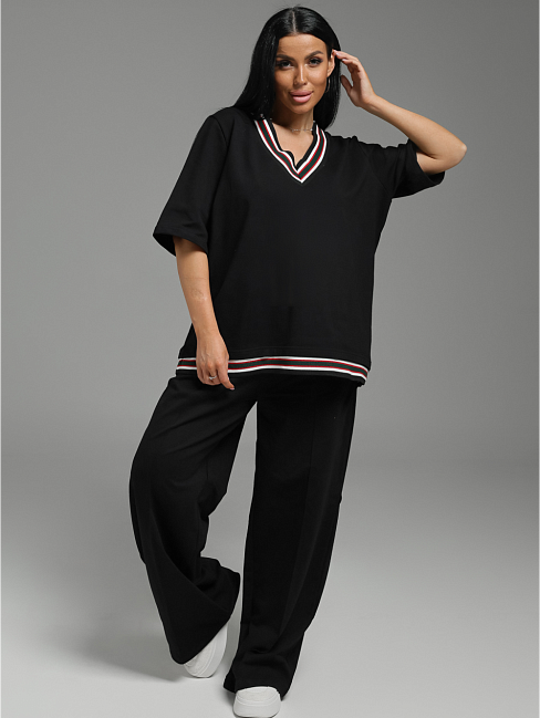 Костюм женский Сити состоит из футболки и брюк. Футболка свободного кроя, с коротким рукавом и V-образным вырезом. Брюки прямые, с отрезным поясом, передние половинки с карманами.