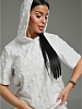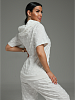 Костюм женский Суфле состоит из футболки и брюк. Футболка прямого силуэта с коротким рукавом и капюшоном. Брюки свободного силуэта с карманами.