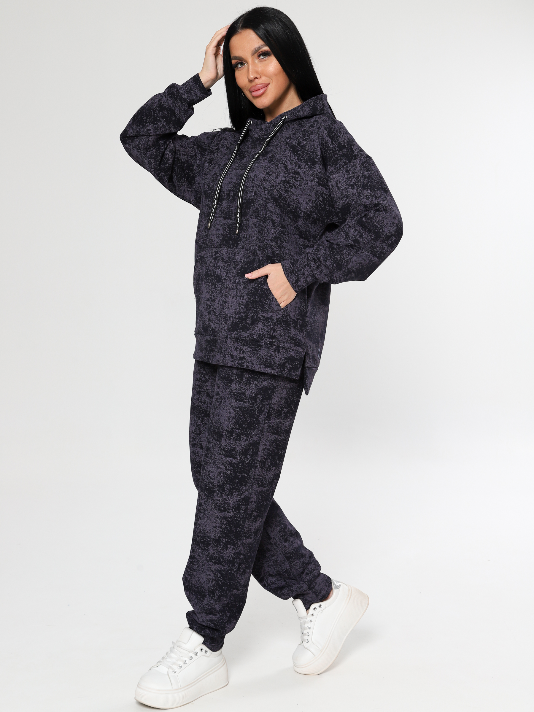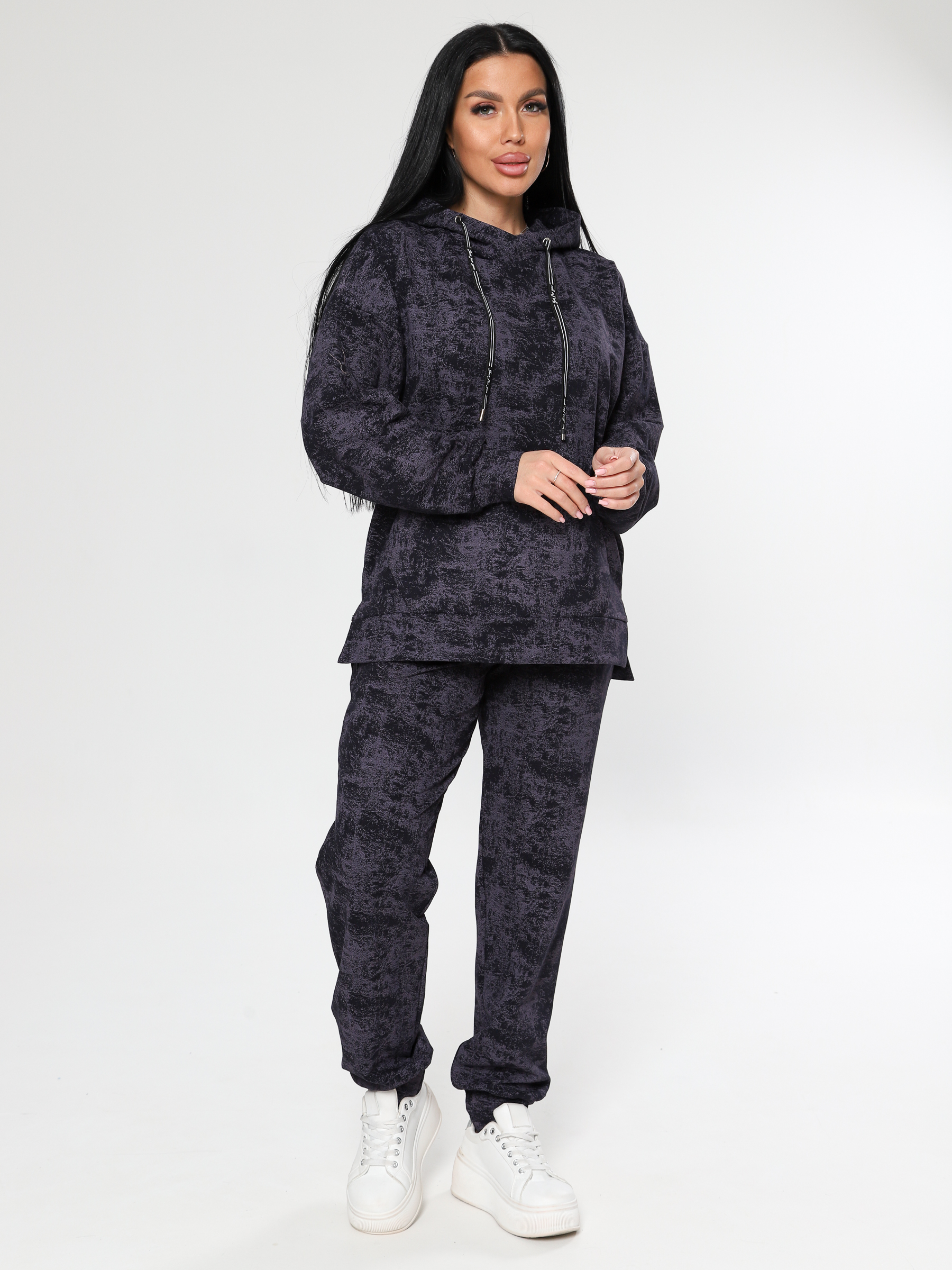 Комфортный женский костюм с капюшоном разработан для длительных прогулок на свежем воздухе, для путешествий, для загородных поездок, для мамочек на прогулки с коляской. Хорошая посадка брюк имеет предельно лаконичный крой, не сковывает движение. Костюм не требовательный в уходе. Прекрасно впишется в базовый гардероб женщины.