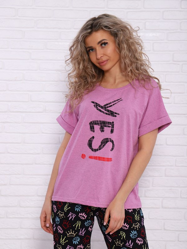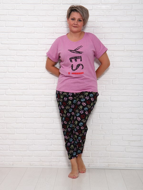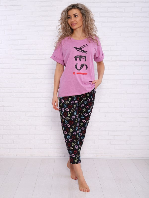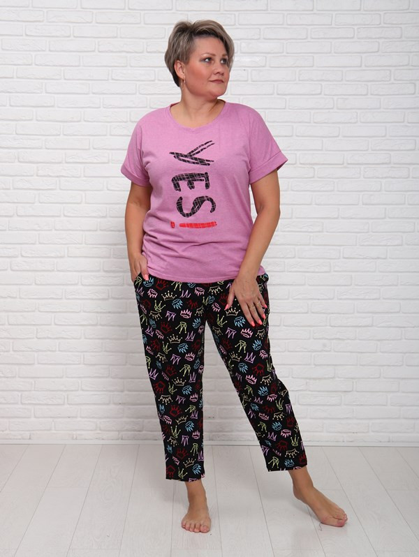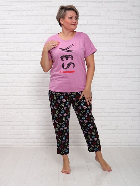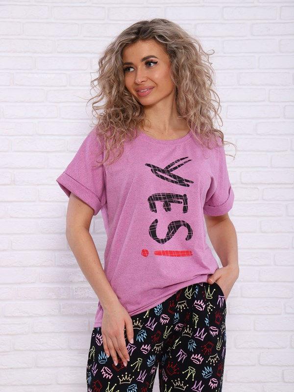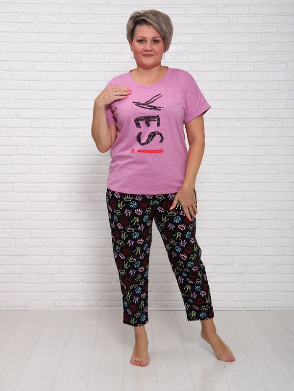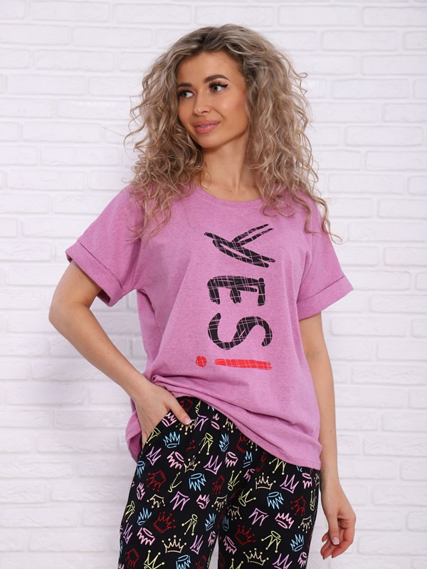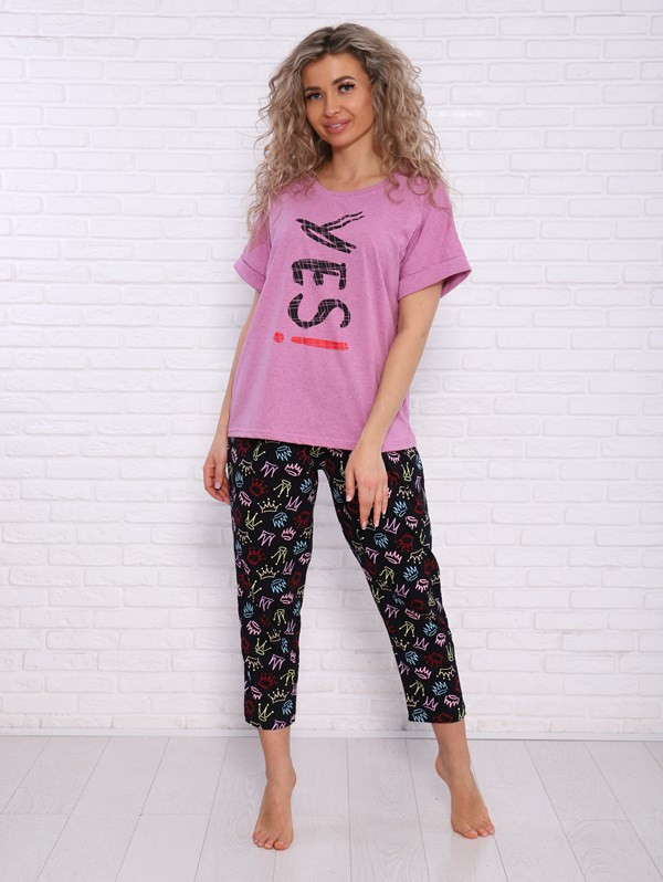 Женский костюм Yes из кулирки — это лёгкий и комфортный комплект, выполненный из 100% хлопка. Костюм хорошо сидит на фигуре, подчёркивает её достоинства, подходит для повседневной носки.
