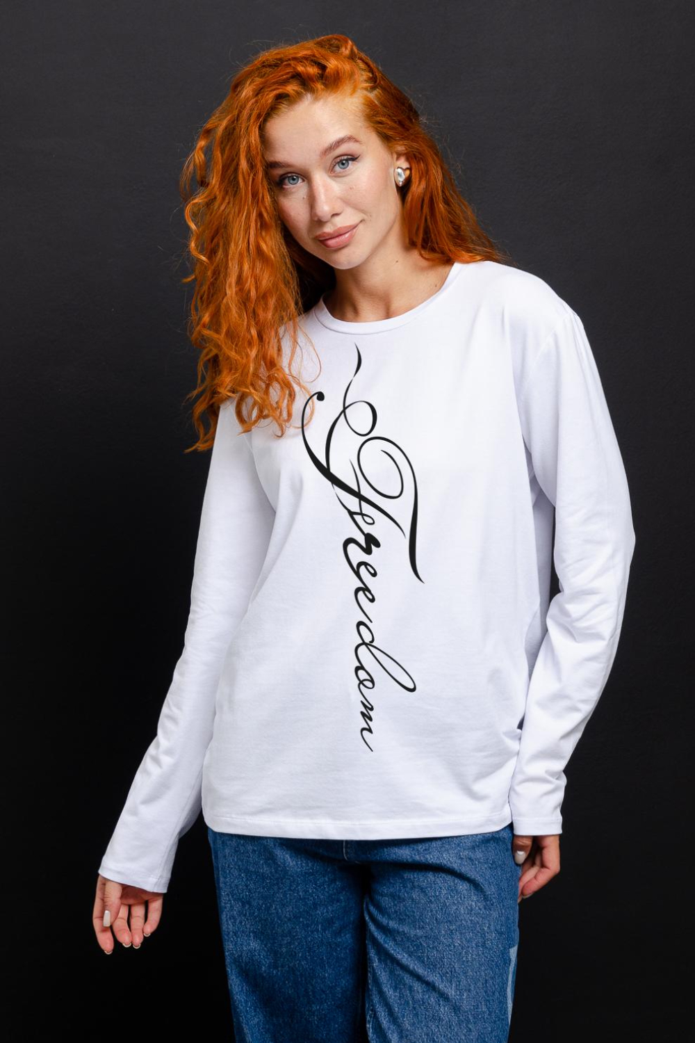 Женский лонгслив 8513/1 / белый+Freedom