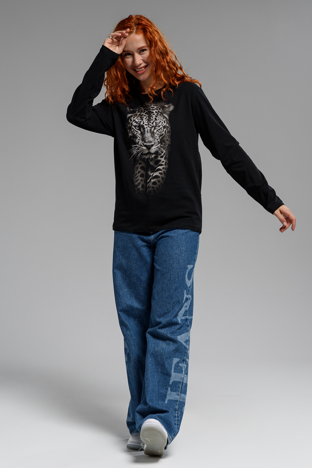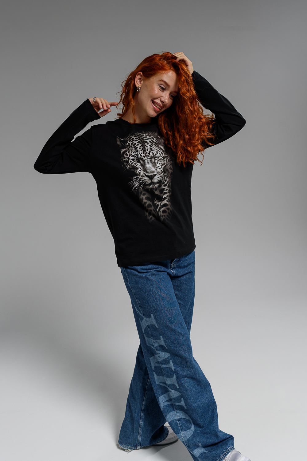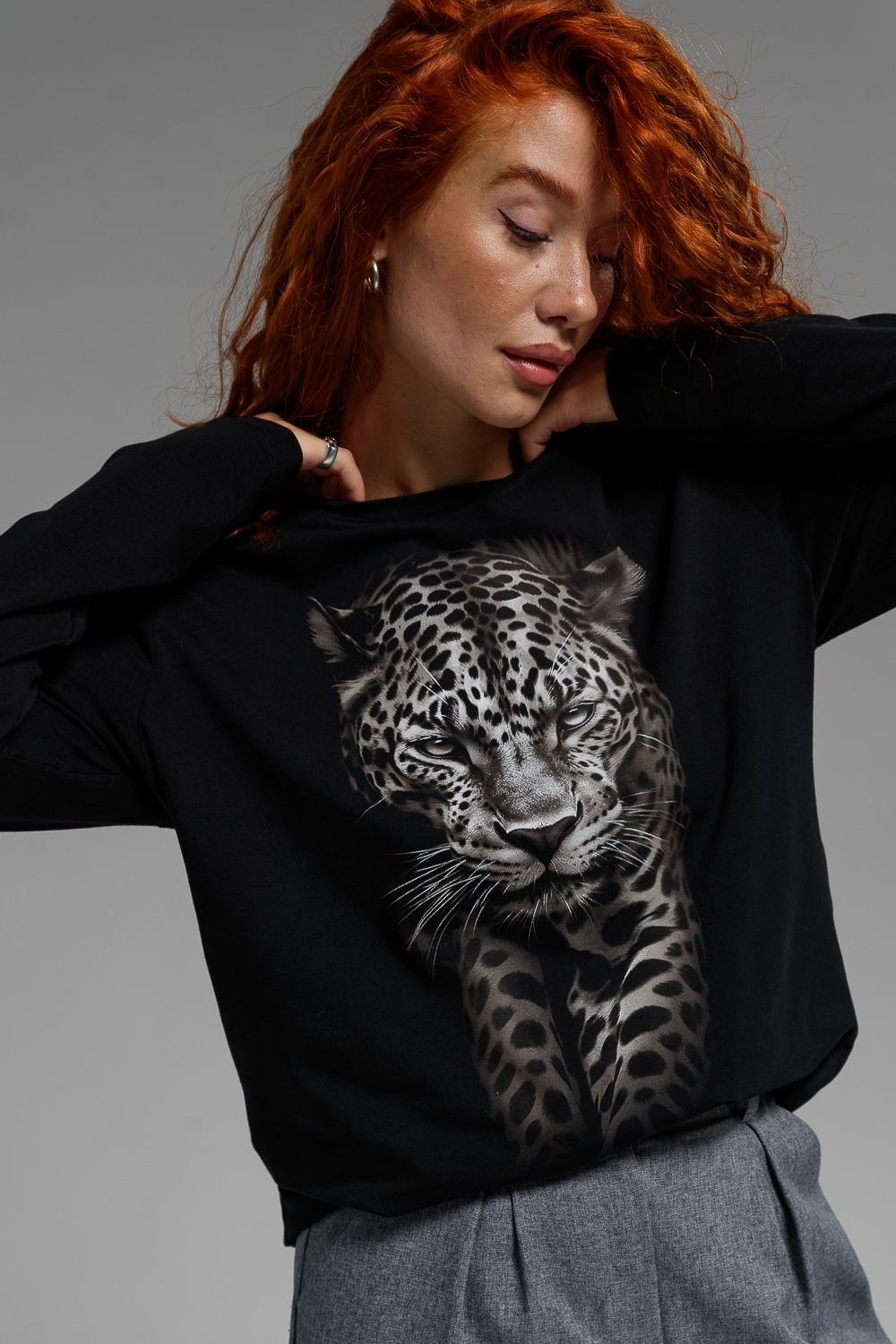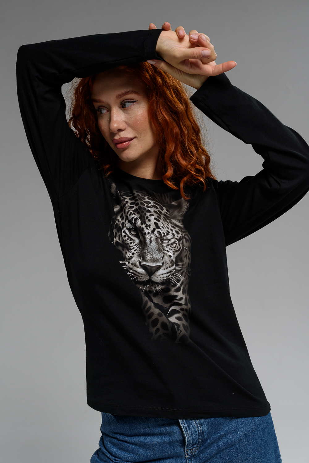 Женский лонгслив 8513/1 / черный+леопард