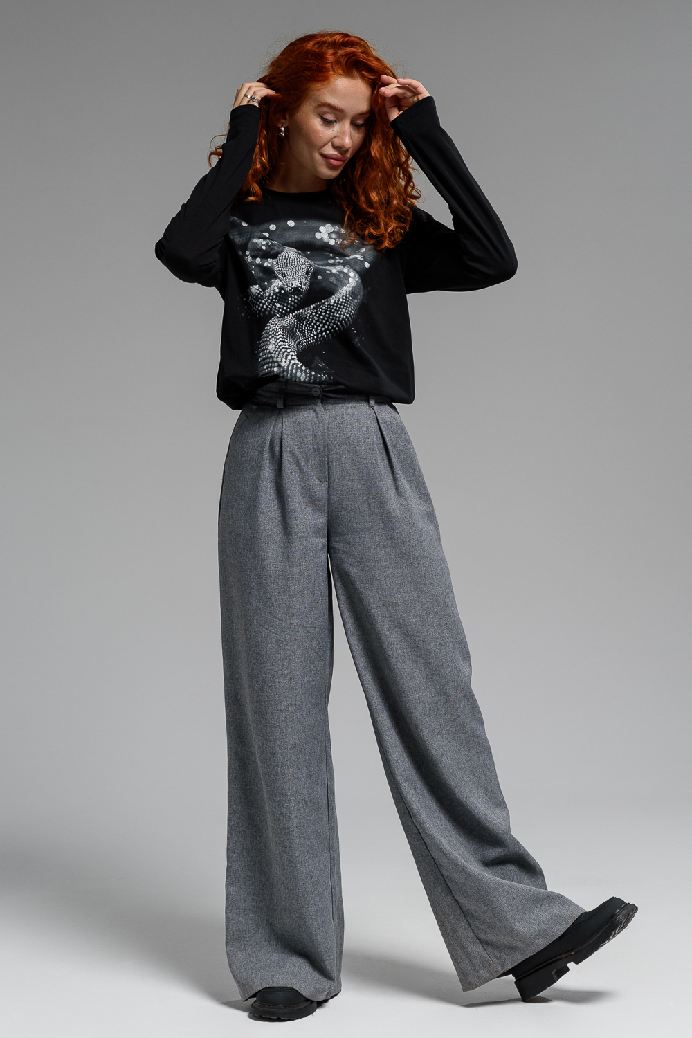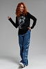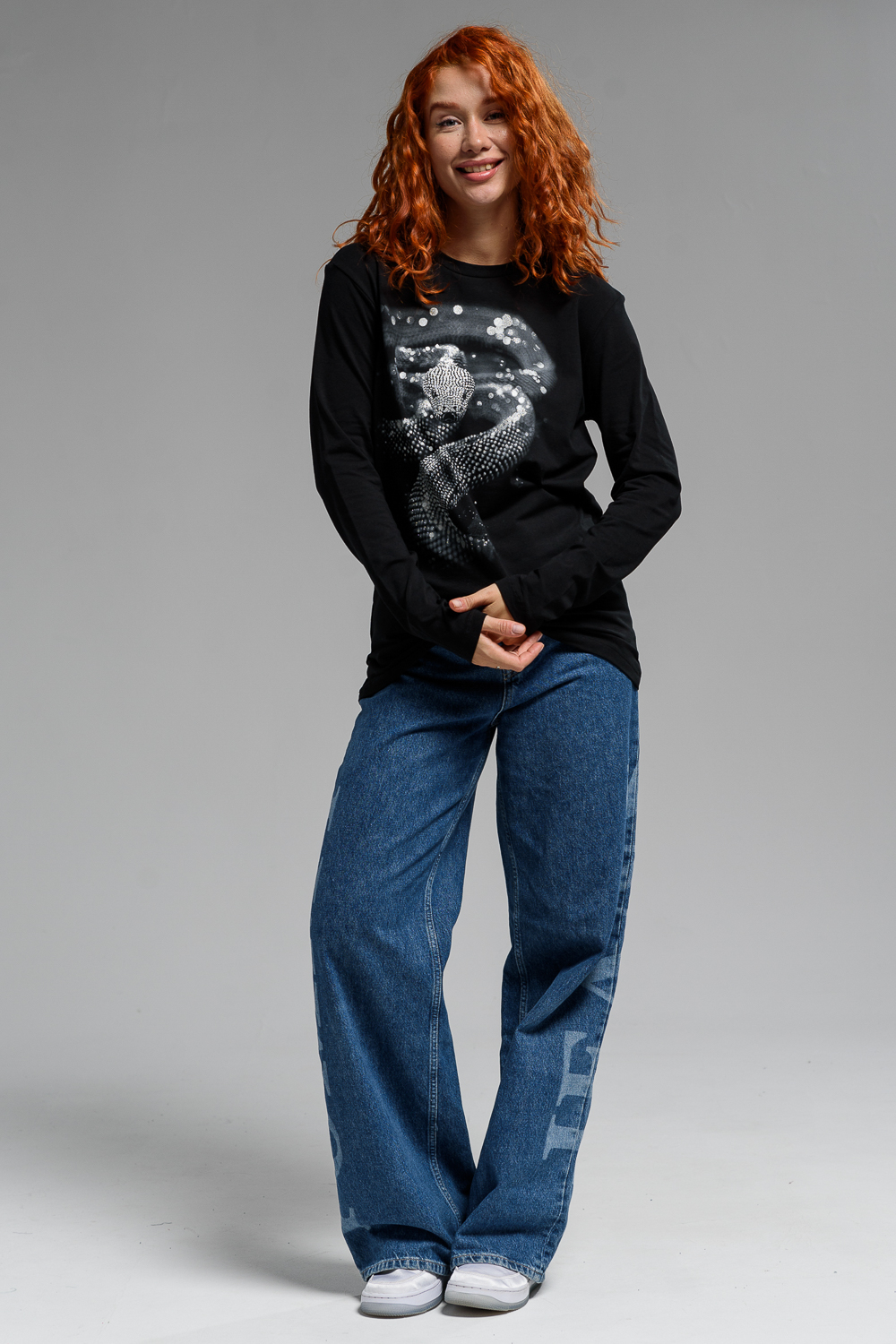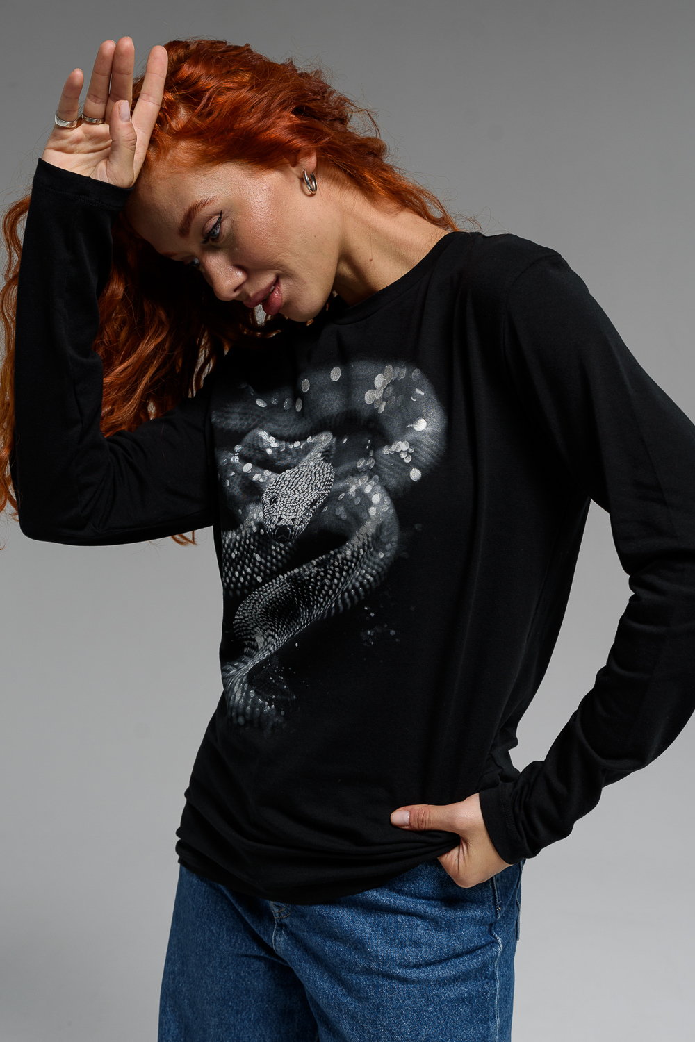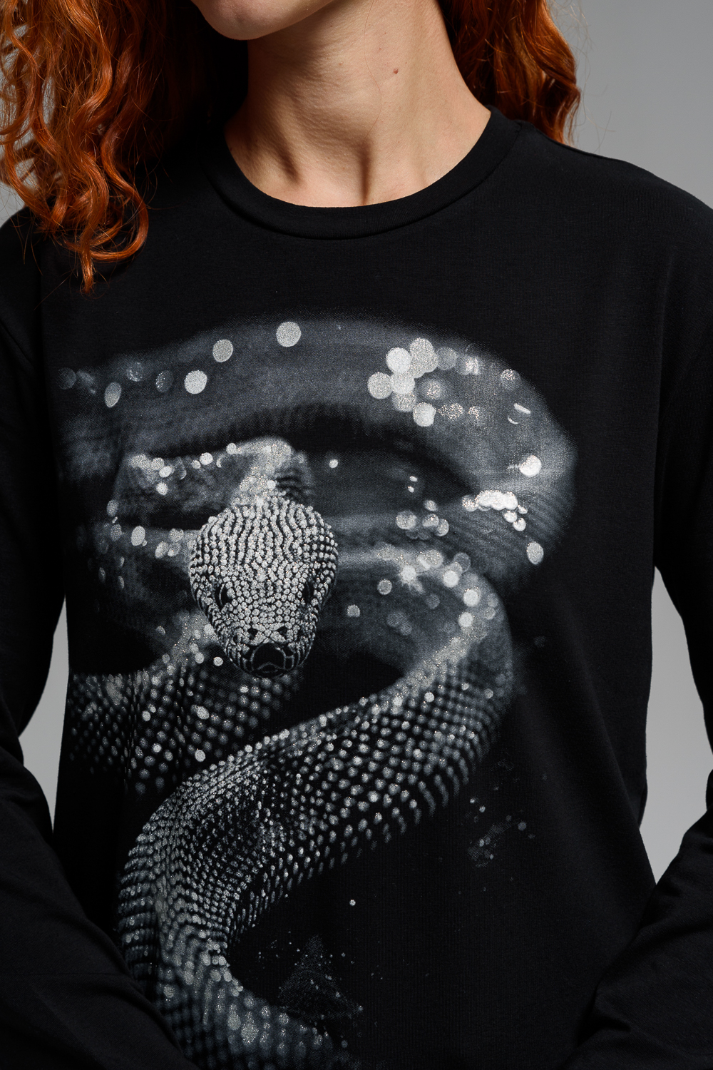 Женский лонгслив 8516 / черный+Змея стразы