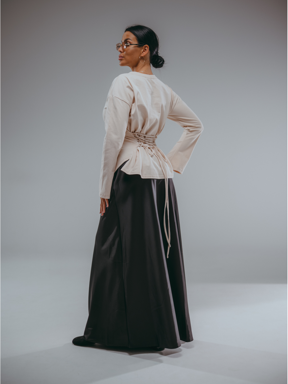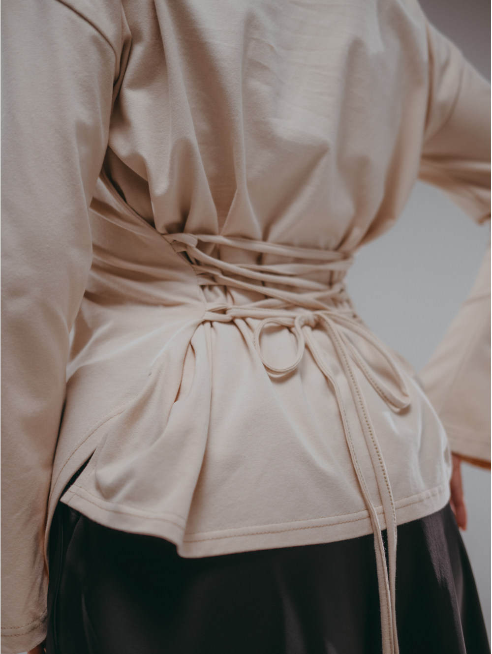 Лонгслив Бренда приталенного силуэта со шнуровкой из окантовки на