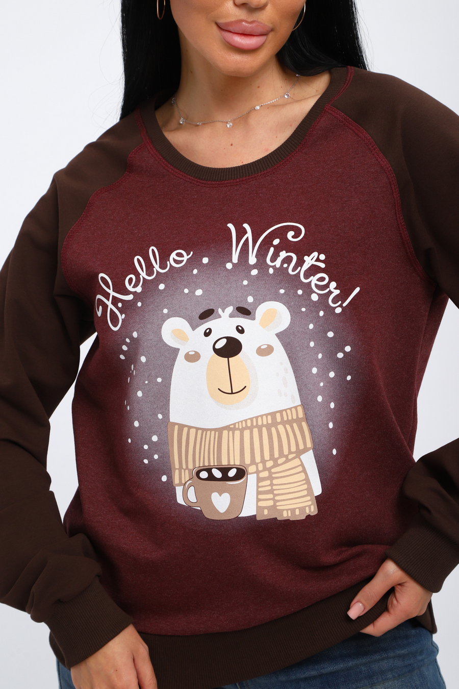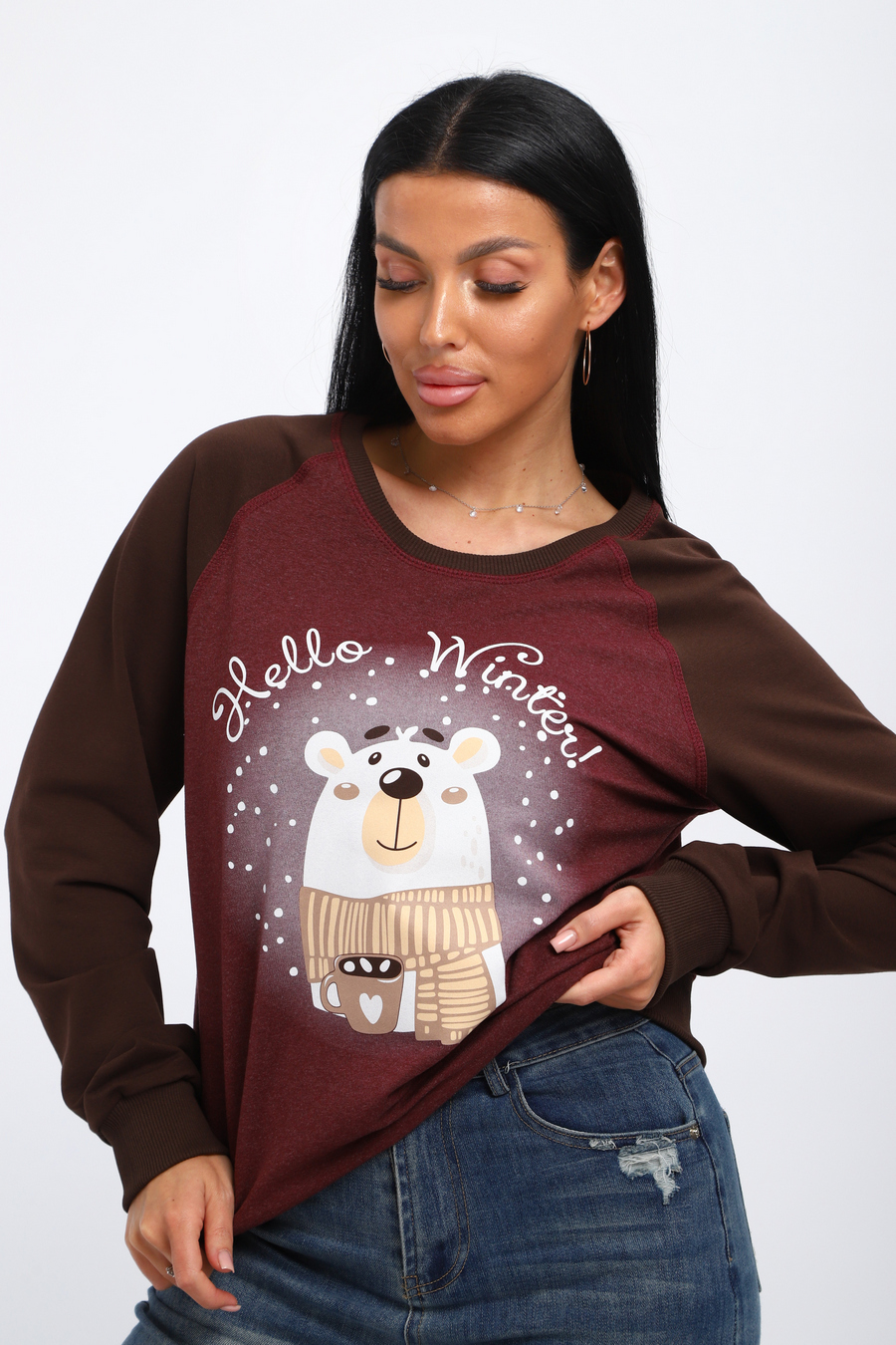 Женский лонгслив из хлопковой трикотажной ткани, футера двухнитки. Женский джемпер отлично подойдет для прогулок или встречи с друзьями.