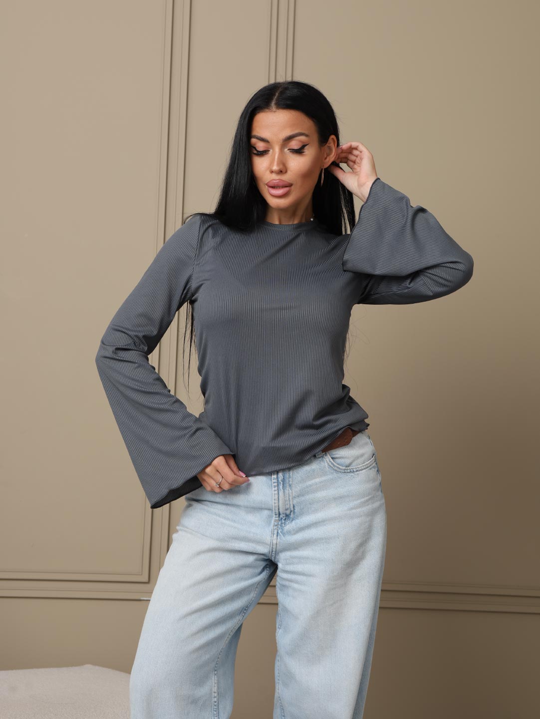 Женский лонгслив мод.2028/2 / Серый