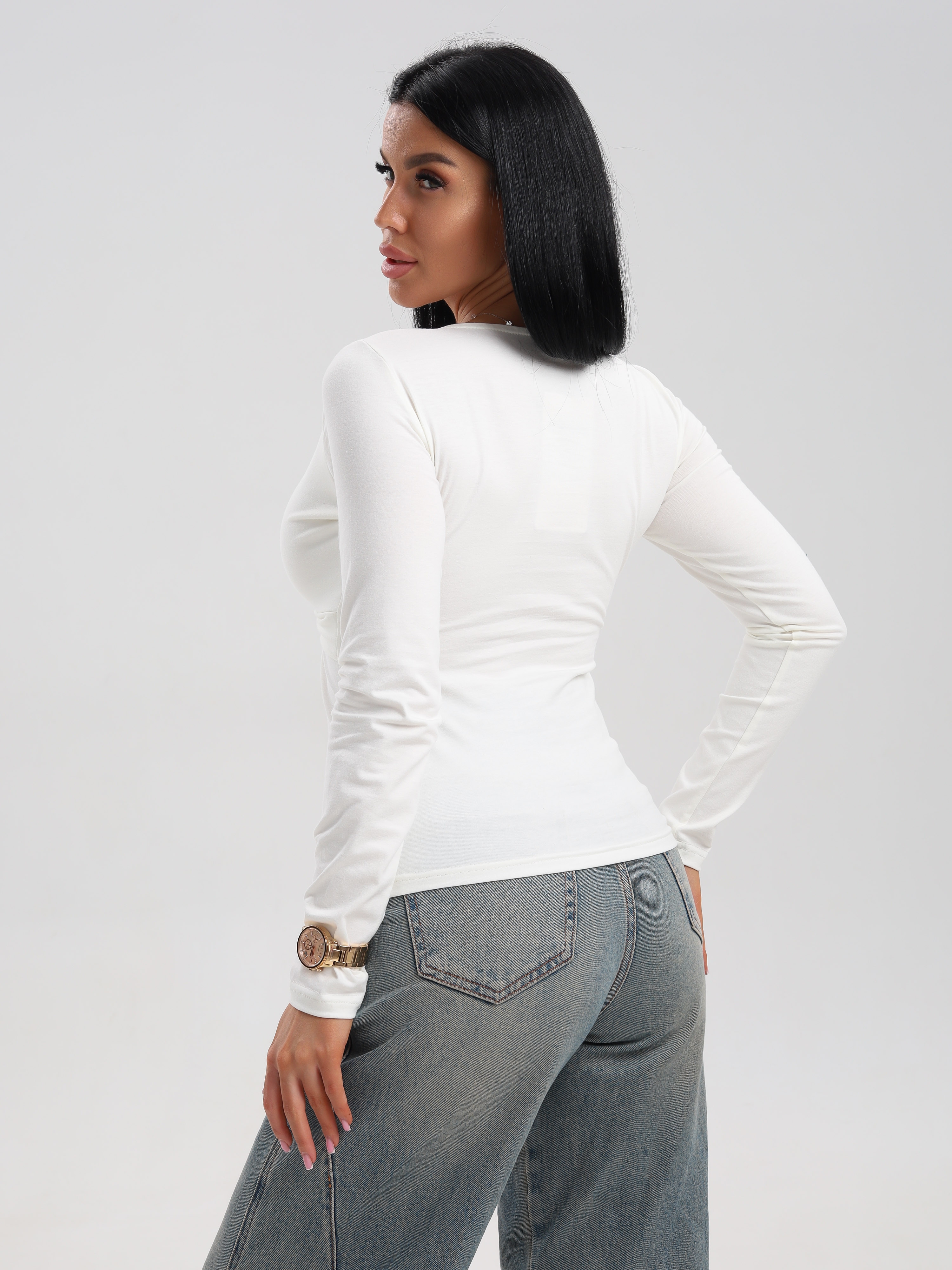Базовый лонгслив из мягкого, гладкого трикотажного полотна. За счет хорошей плотности материала - изделие не просвечивает, а небольшое количество искусственных волокон делает материал эластичным и долговечным. Благодаря правильному и наиболее удобному полуприлегающему силуэту данная модель вполне может занять самое топовое место в вашем гардеробе. Создавай с ним стильные и современные образы, сочетая как с классикой, так и с ультрамодными вещами.