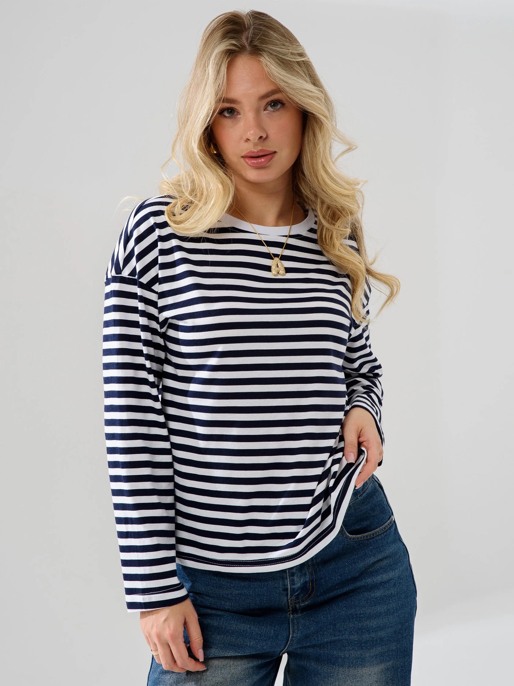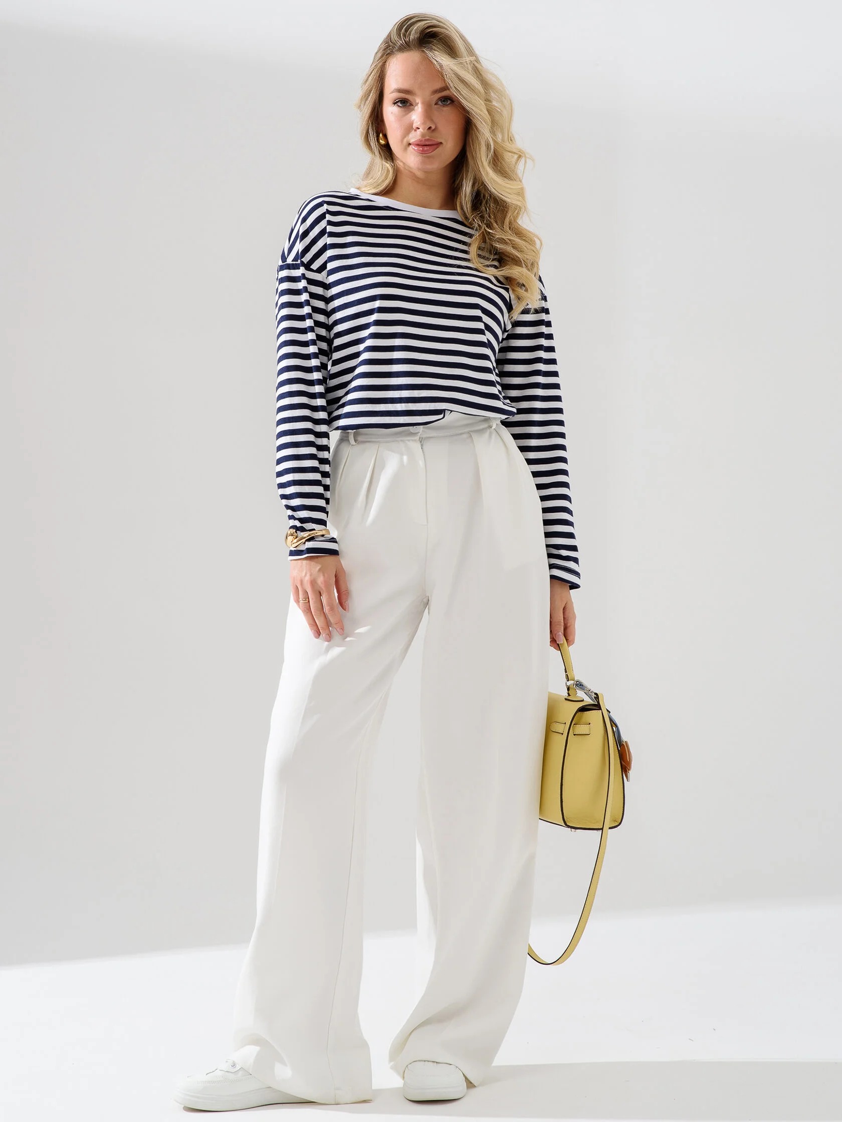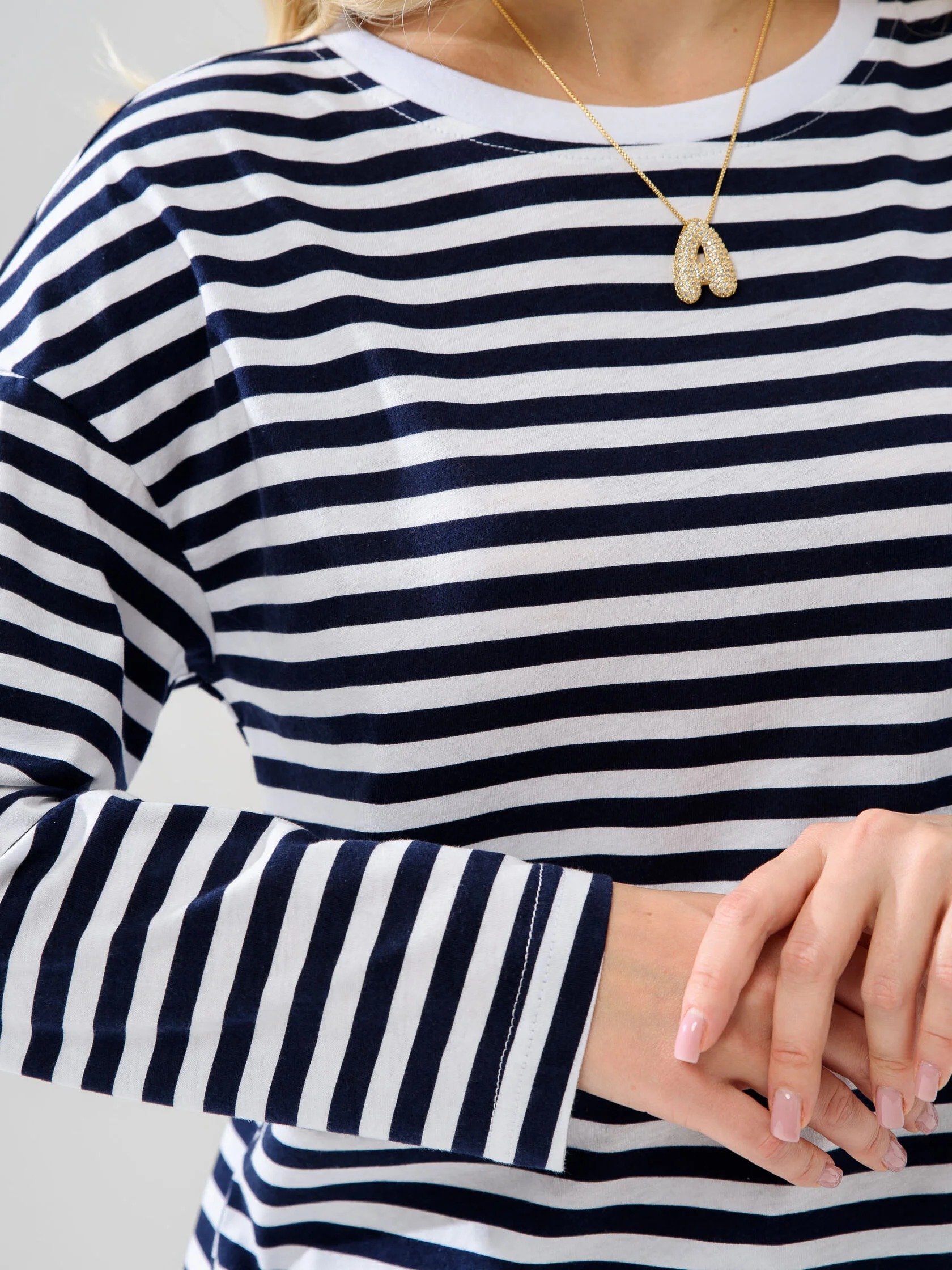 Элегантный женский лонгслив 2394-К с классическим дизайном в полоску, выполненный из высококачественной кулирки. Модель отличается простотой и универсальностью, прекрасно сочетается с различными элементами гардероба.