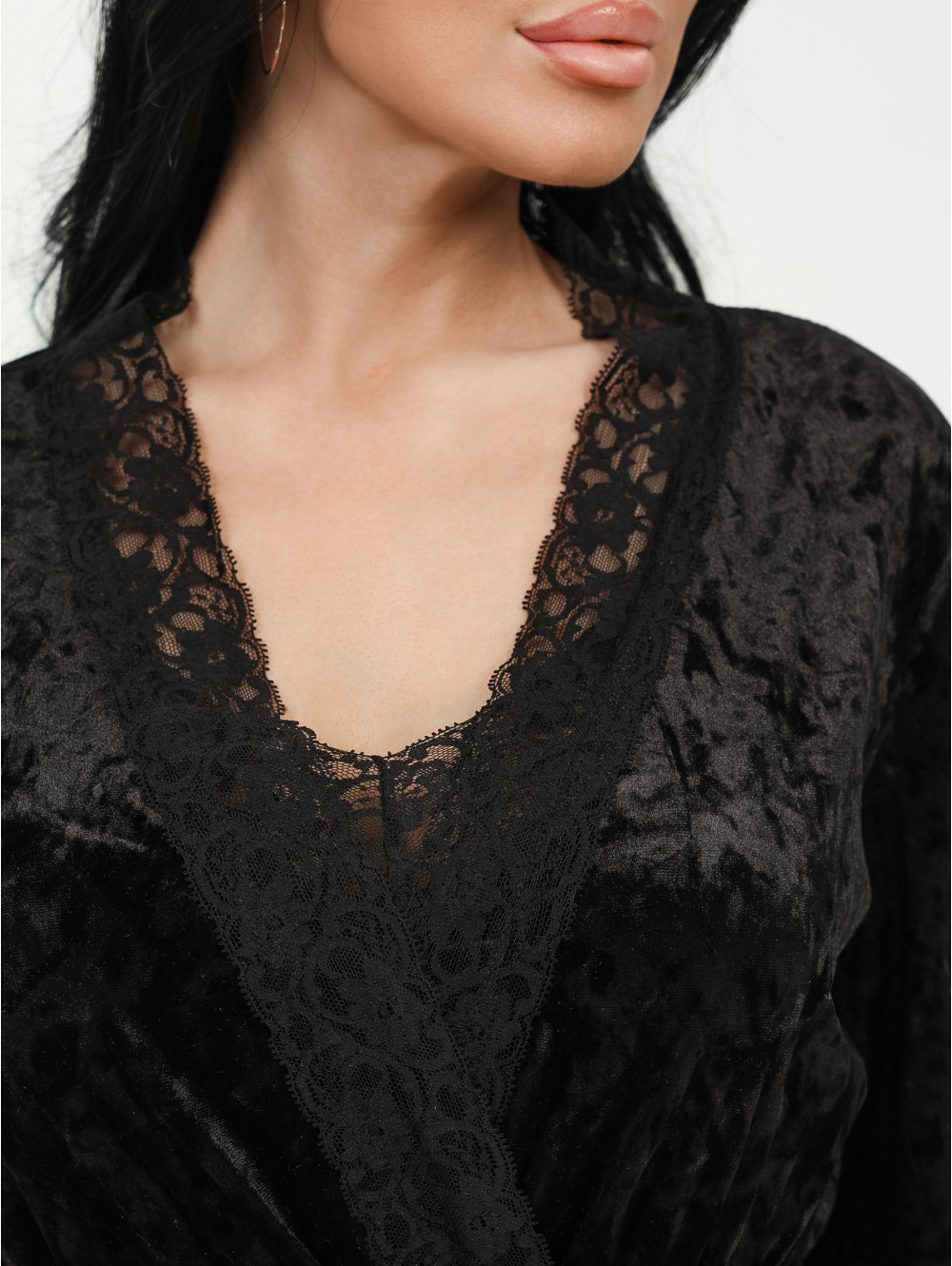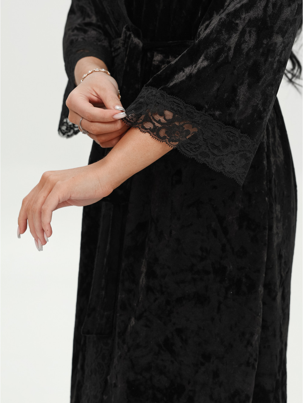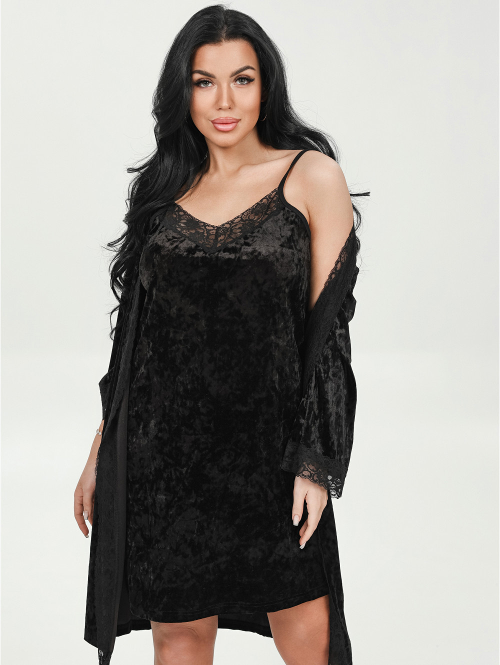 Пеньюар Малахит – лучшее модное изобретение, способное подчеркнуть женскую сексуальность. Он может стать изюминкой любого образа, подарить женщине уверенность в себе и любовь мужчины. Представляем Вам очаровательный комплект из роскошного бархата с отделкой из мягкого кружева. Он состоит из двух предметов: халат-пеньюар и сорочка на тонких бретельках. Изготовленный из мягкого, нежного, благородного материала, который на протяжении столетий не утрачивает своей привлекательности и высокого статуса. Бархат – это символ достатка, богатства, изысканной утонченности и высокого статуса владельца. Изделия из этой ткани всегда нарядны и лишены даже малейшего намека на повседневность.