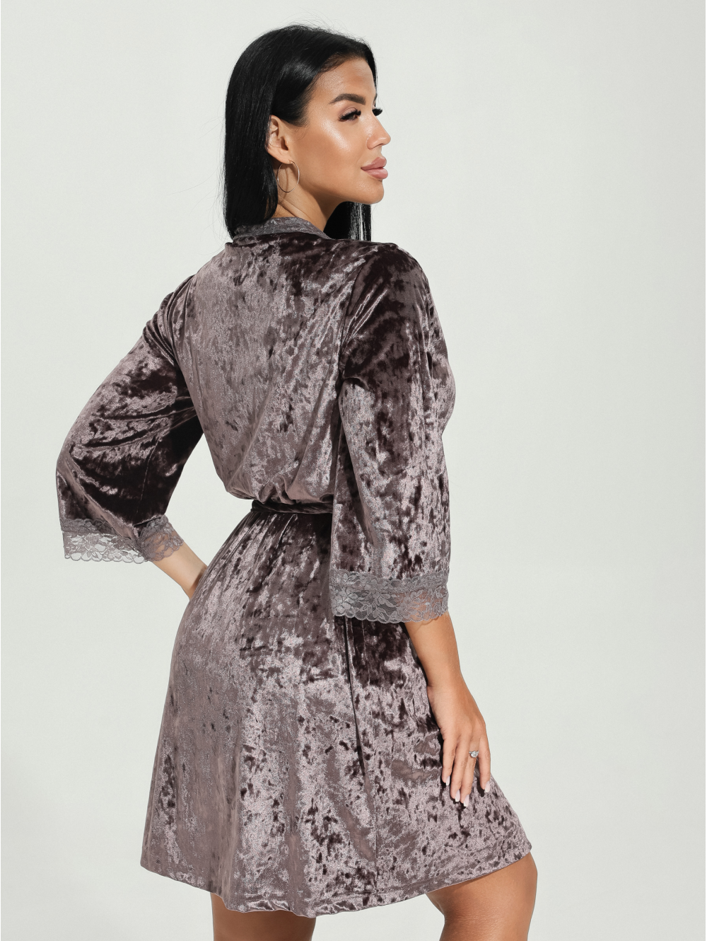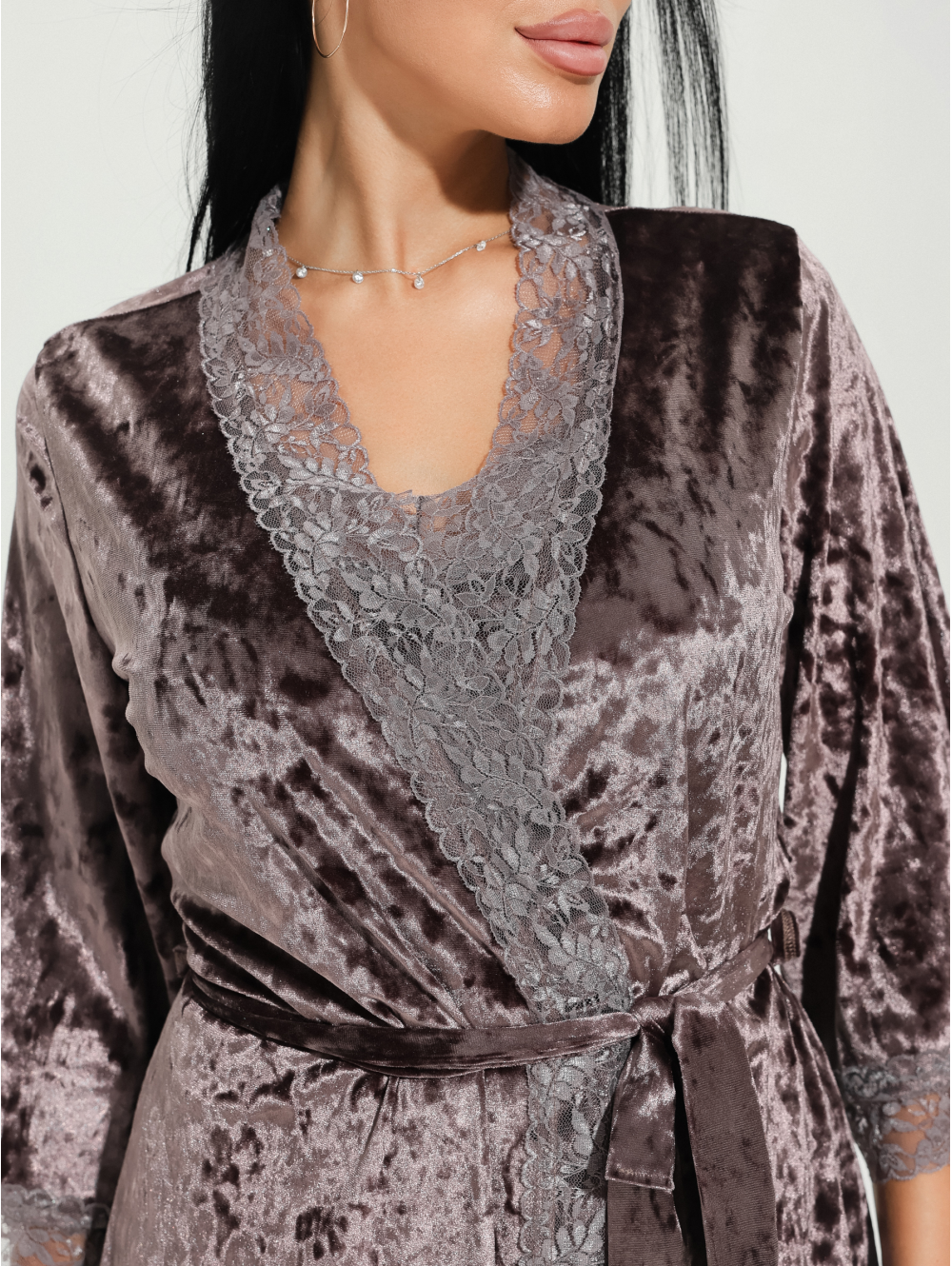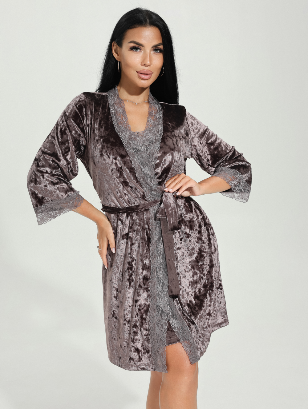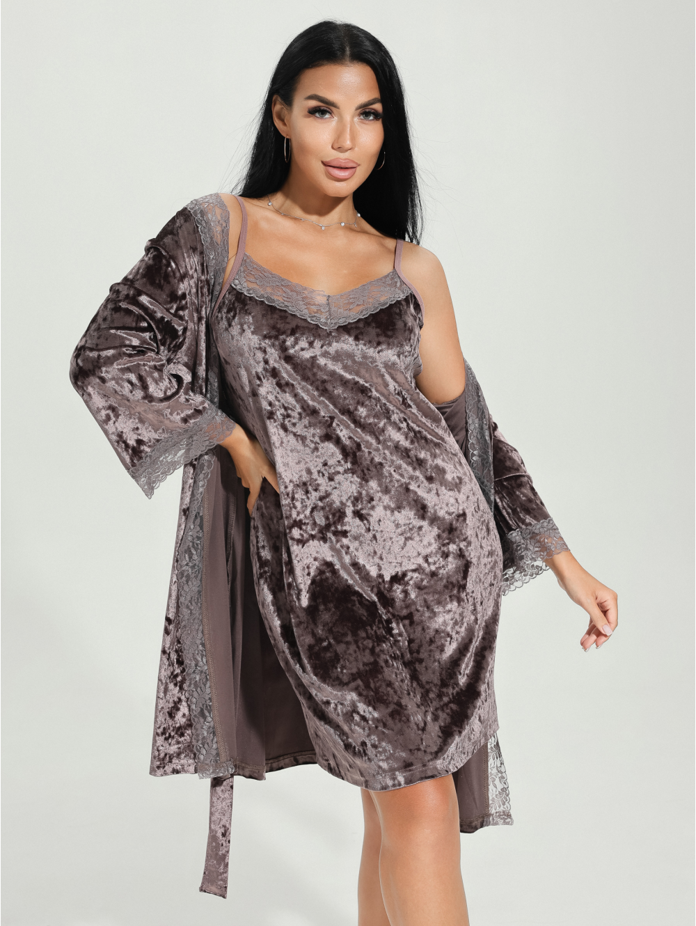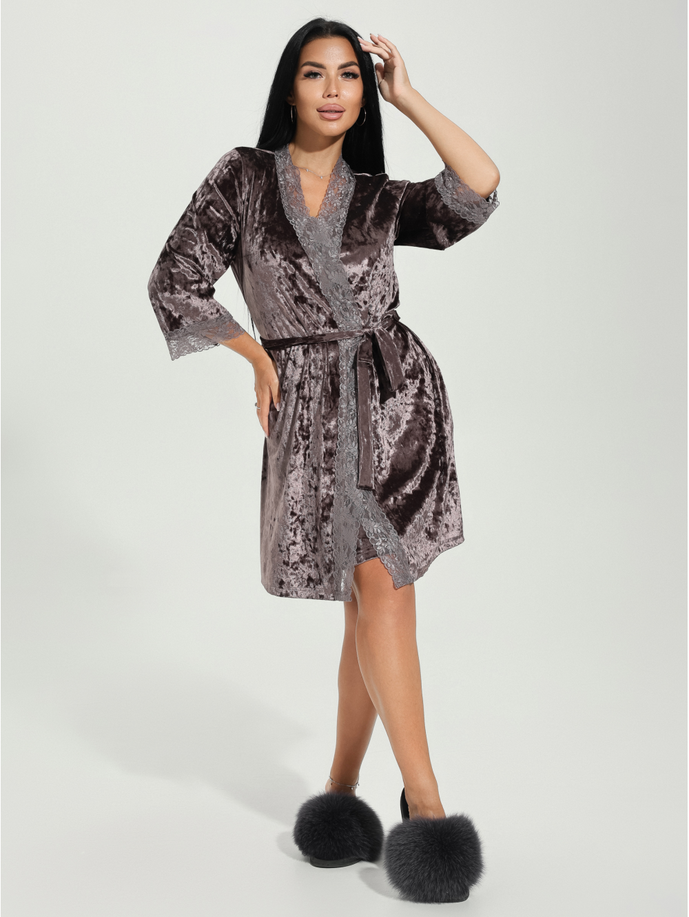 Пеньюар Малахит – лучшее модное изобретение, способное подчеркнуть женскую сексуальность. Он может стать изюминкой любого образа, подарить женщине уверенность в себе и любовь мужчины. Представляем Вам очаровательный комплект из роскошного бархата с отделкой из мягкого кружева. Он состоит из двух предметов: халат-пеньюар и сорочка на тонких бретельках. Изготовленный из мягкого, нежного, благородного материала, который на протяжении столетий не утрачивает своей привлекательности и высокого статуса. Бархат – это символ достатка, богатства, изысканной утонченности и высокого статуса владельца. Изделия из этой ткани всегда нарядны и лишены даже малейшего намека на повседневность.