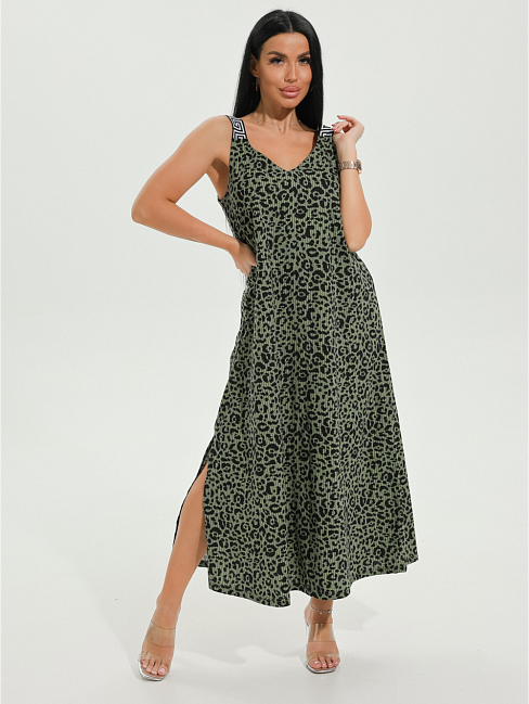 Сарафан женский Амира А-образного силуэта, длиной до щиколотки. Вырез горловины на полочке и спинке V- образный.
