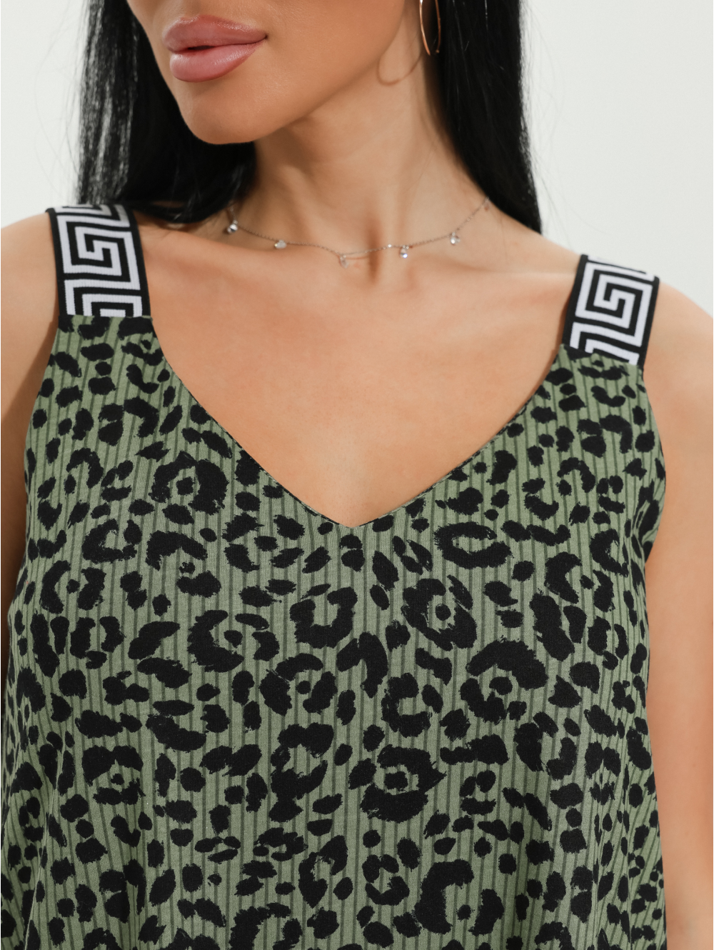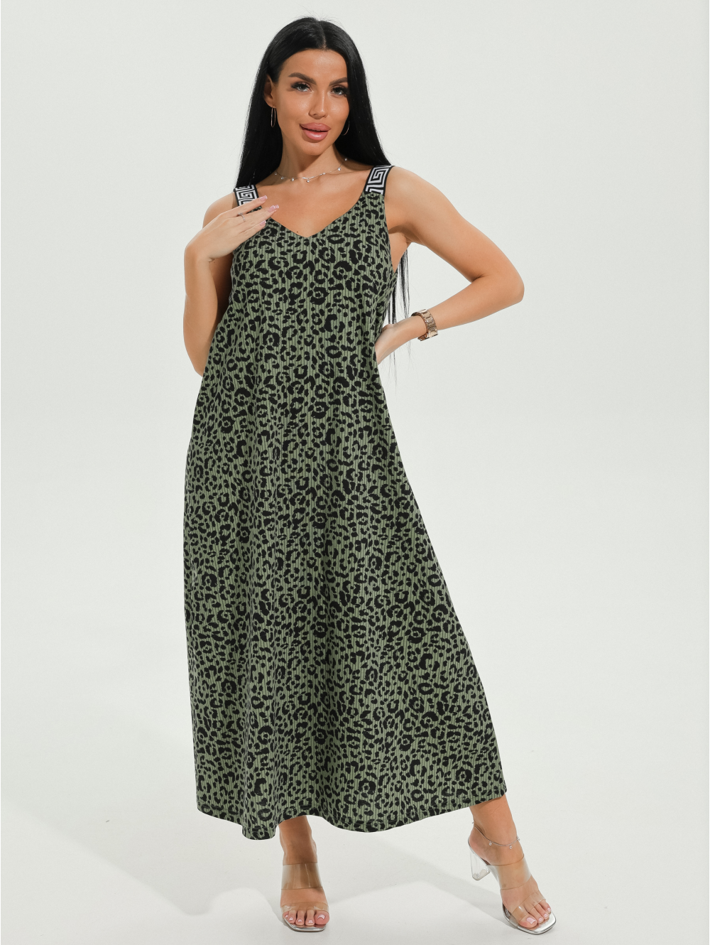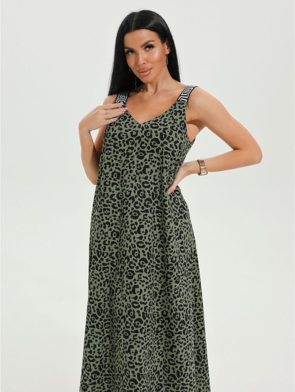 Сарафан женский Амира А-образного силуэта, длиной до щиколотки. Вырез горловины на полочке и спинке V- образный.