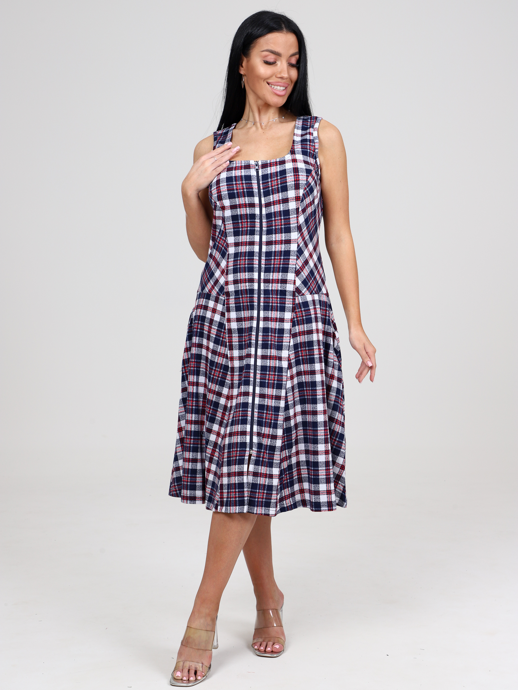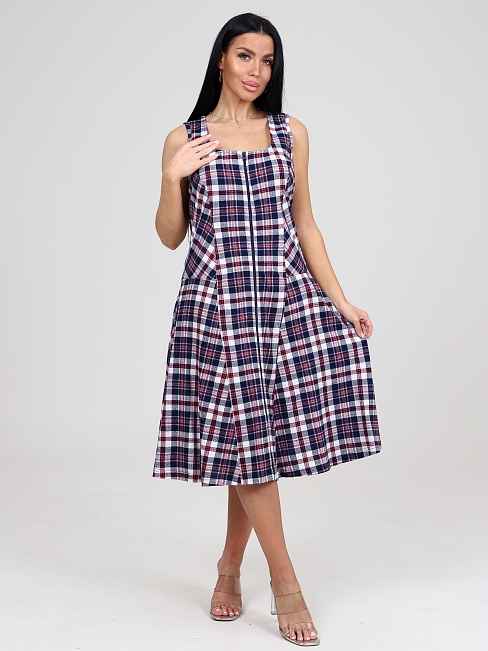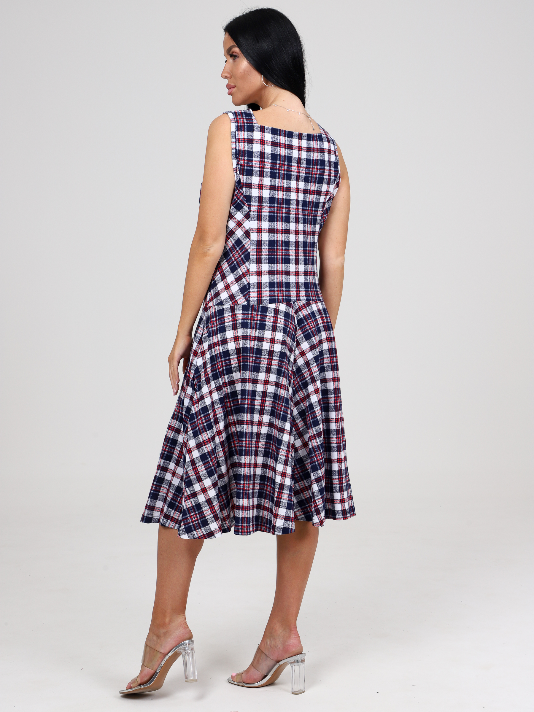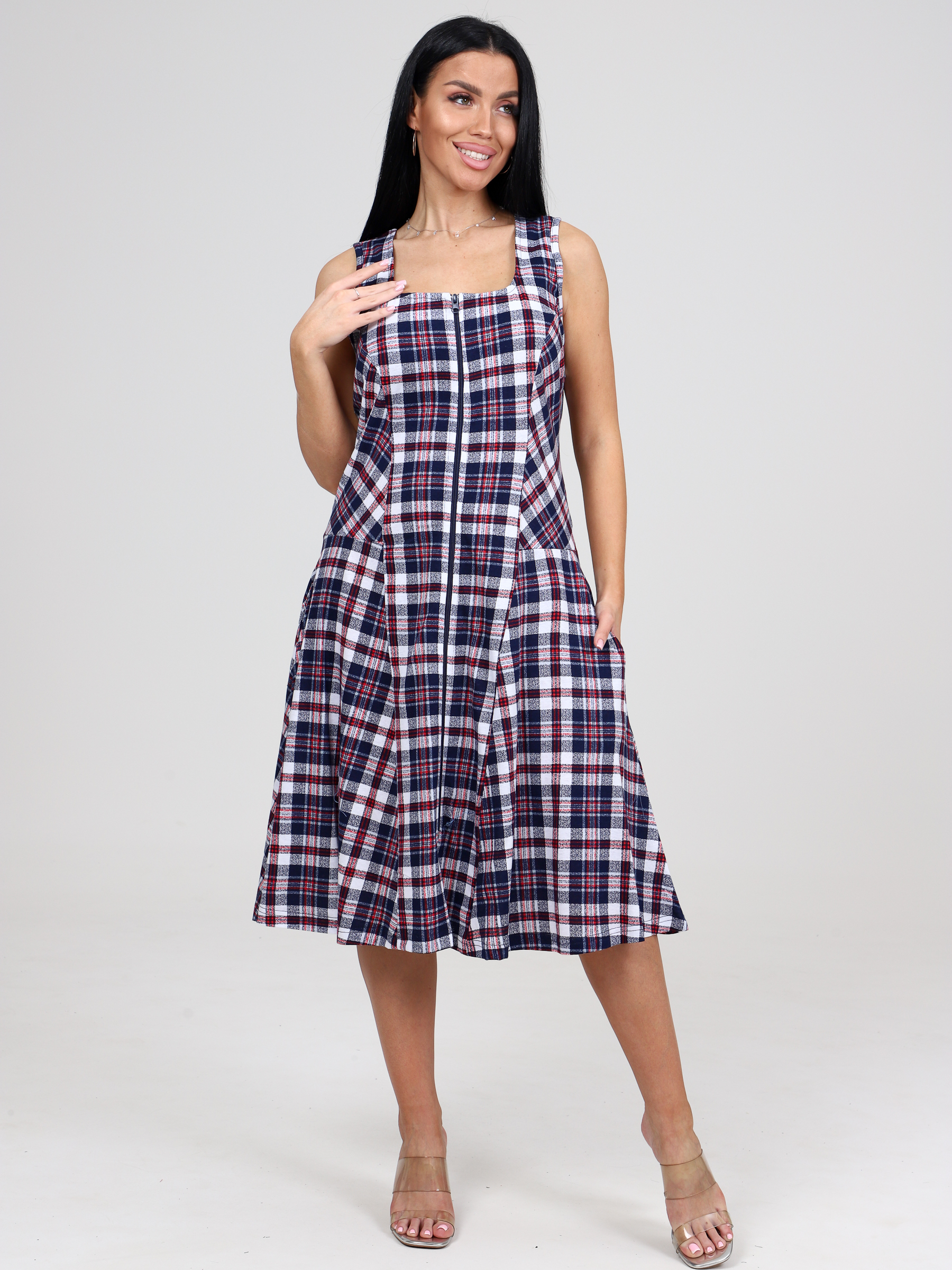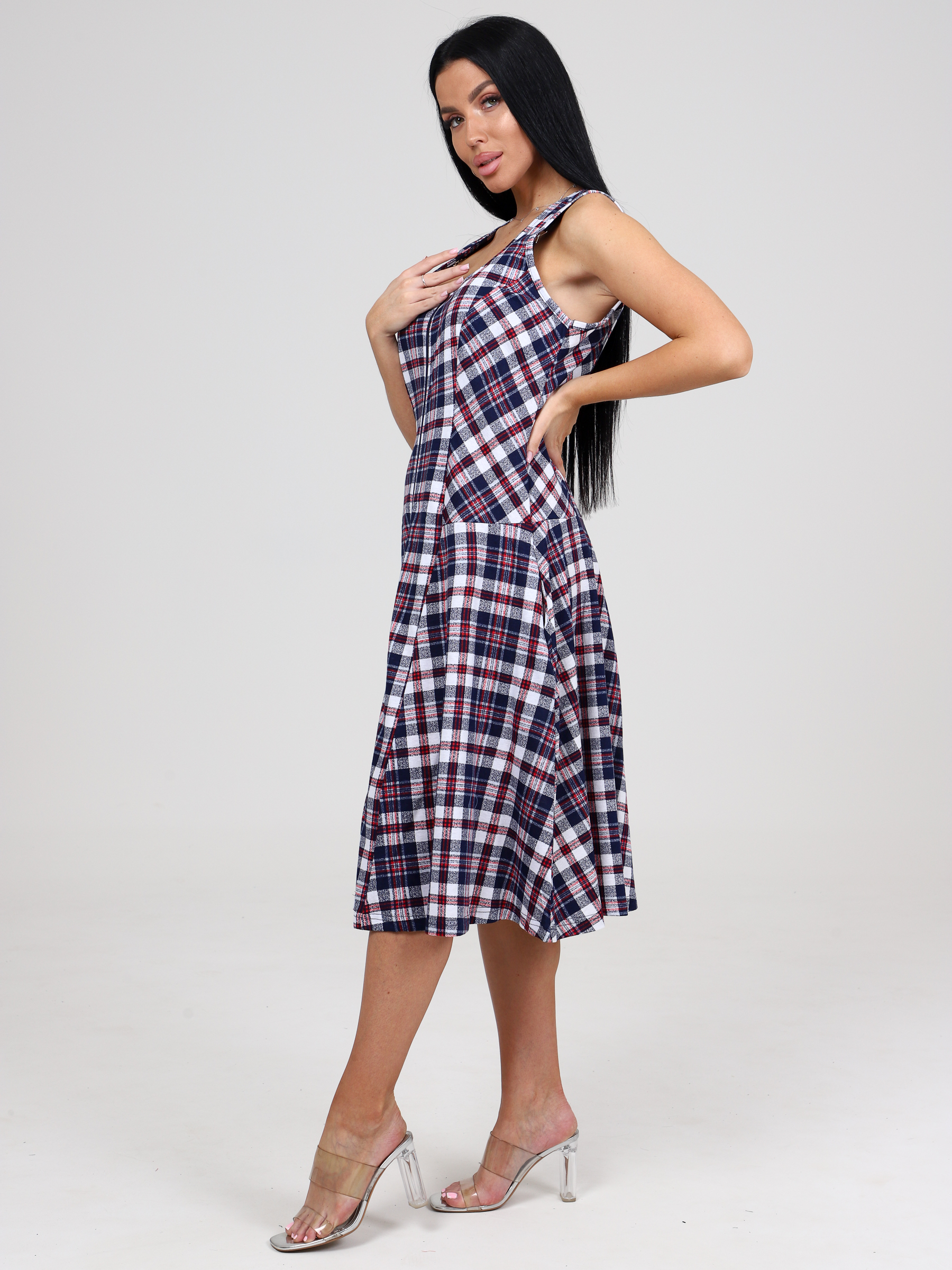 Женский сарафан Клетка СК-336 / Сине-красная рябь